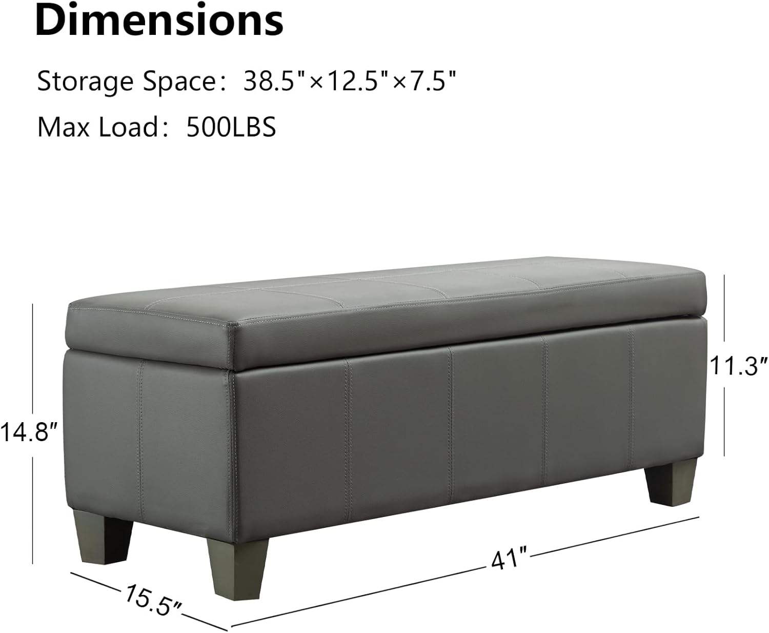 Grey Faux Leather Ottoman with Storage, Rectangular Extra Long Storage Bench for Bedroom and Living Room