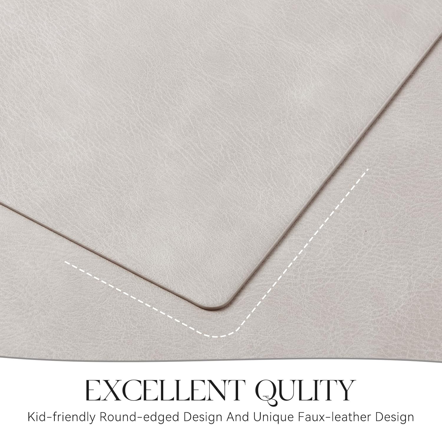 MOSAYT Vinyl Placemats Set of 8-12 X 17 Inch - Faux Leather 100% Waterproof Oil-Proof Wipeable PU Place Mats, Heat Resistant Reversible Table Mats for Kitchen, Dining, Outdoor (Light Grey)