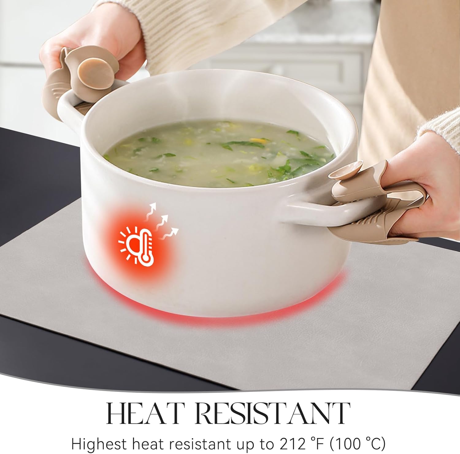 - PROTECT YOUR TABLE: Our placemats are 2mm thick and heat-resistant up to 212℉/100℃, which can protect your table from high temperatures and reduces noise from plates and flatware. It is an excellent choice to protect protect the surface of your dining table from hot dishes and liquid spills.