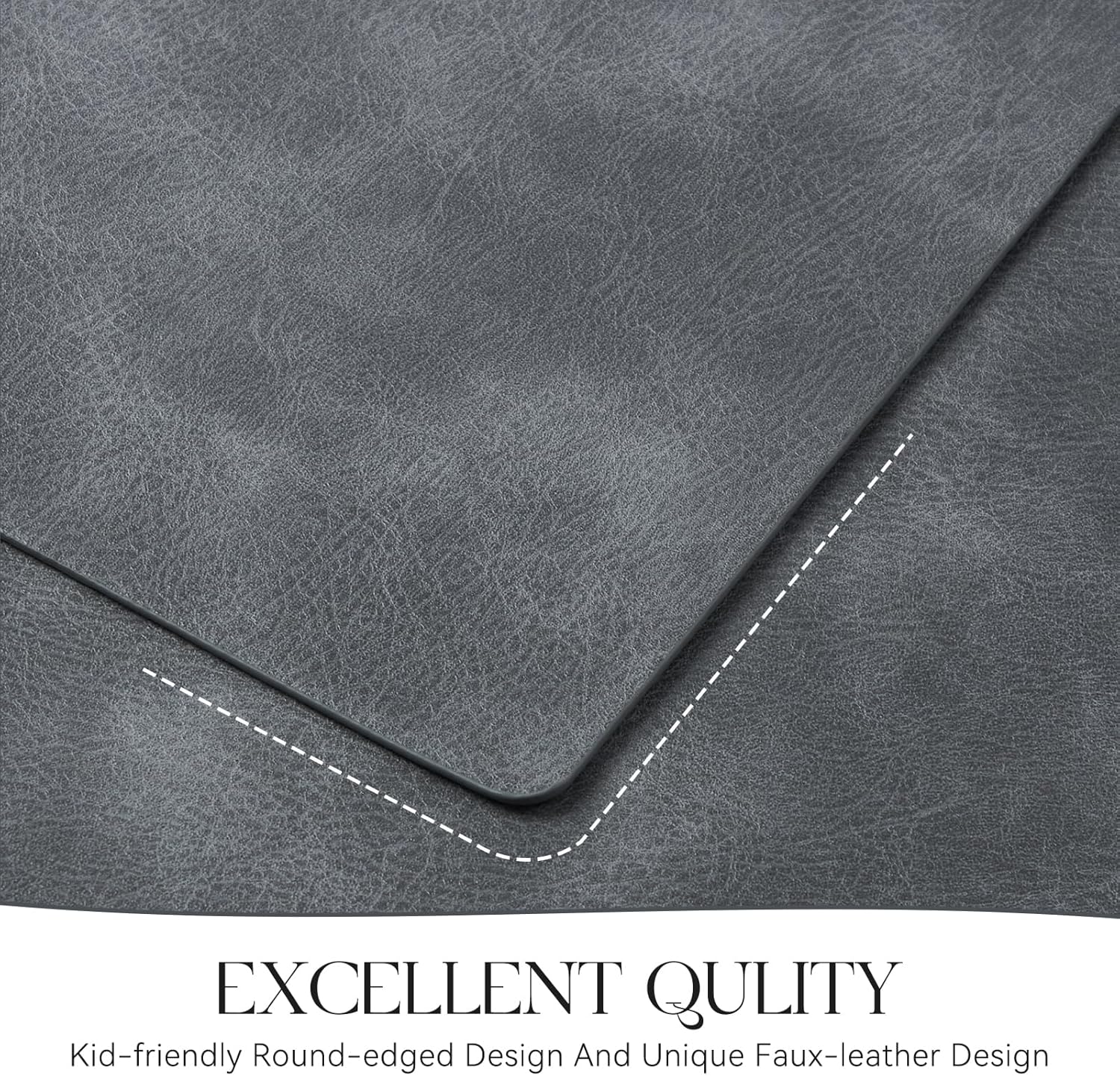 - PREMIUM QUALITY AND DURABLE: MOSAYT leather placemats are made of high quality faux leather, designed for long term use. Fine workmanship ensures superior quality and long-lasting durability of the placemats, easily protecting your table from scratches and stains.