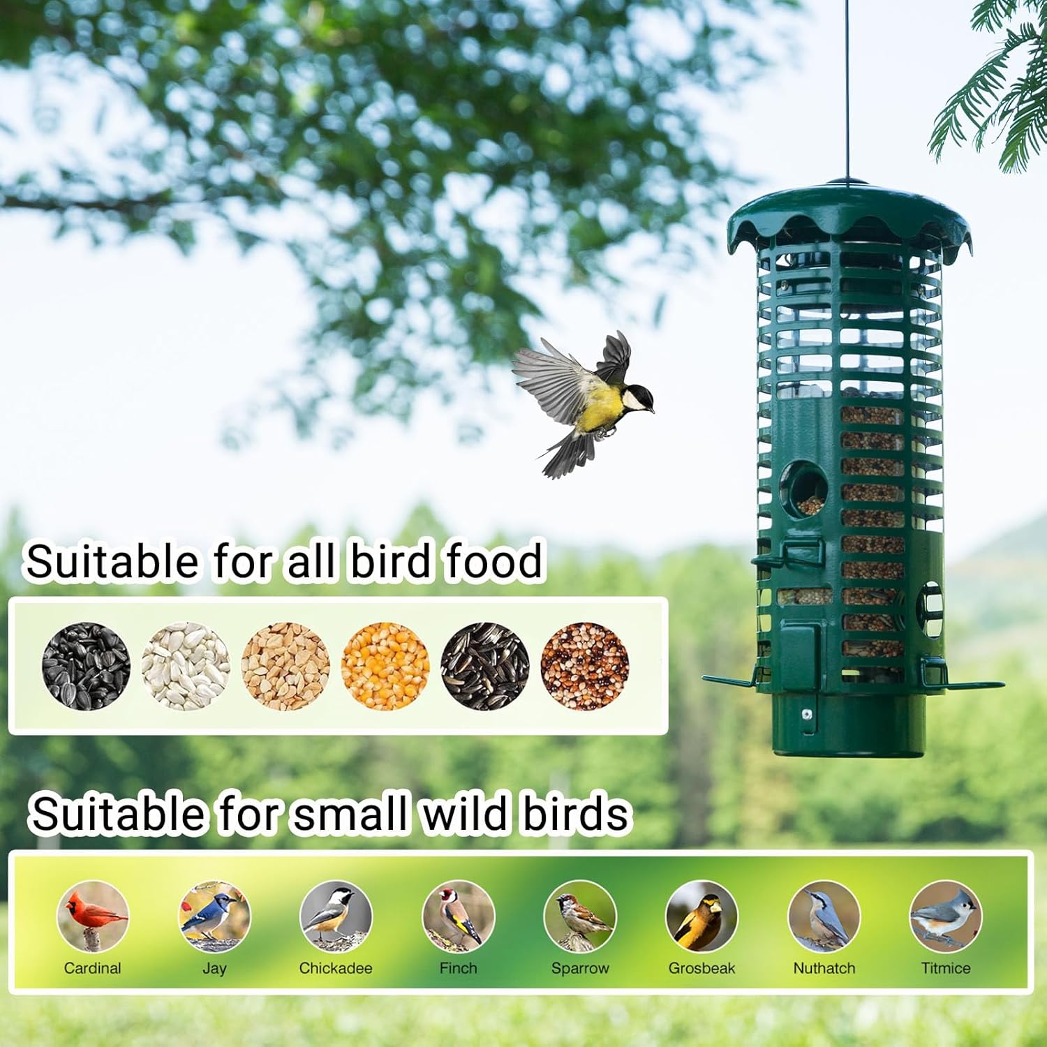 - 【Attracts a Variety of Birds】Designed to accommodate various bird species, our squirrel proof bird feeder's mesh design allows small and medium-sized birds to comfortably perch and feed. Enjoy the beauty of different birds flocking to your yard, adding life and color to your outdoor space.