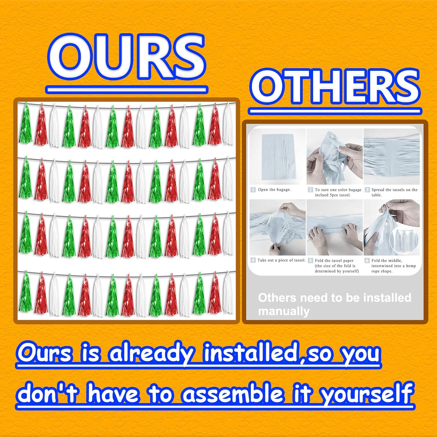 - 【Reusable Tassel Garland Material】: high-quality metallic foil tassel garlands, with the virtue of nice craftsmanship and lightweight, they are reusable and safe, and not easy to fade; They come with white ribbon for hanging, and garland tassels hang perpendicular to the string, and are adjustable to provide you with the option of spreading the tassels out or piecing them closer together.