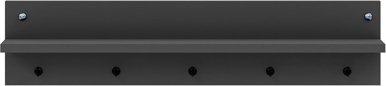 Modern Wall-Mounted Coat Rack with Shelf and Hooks - Wooden Entryway Organizer (Grey)