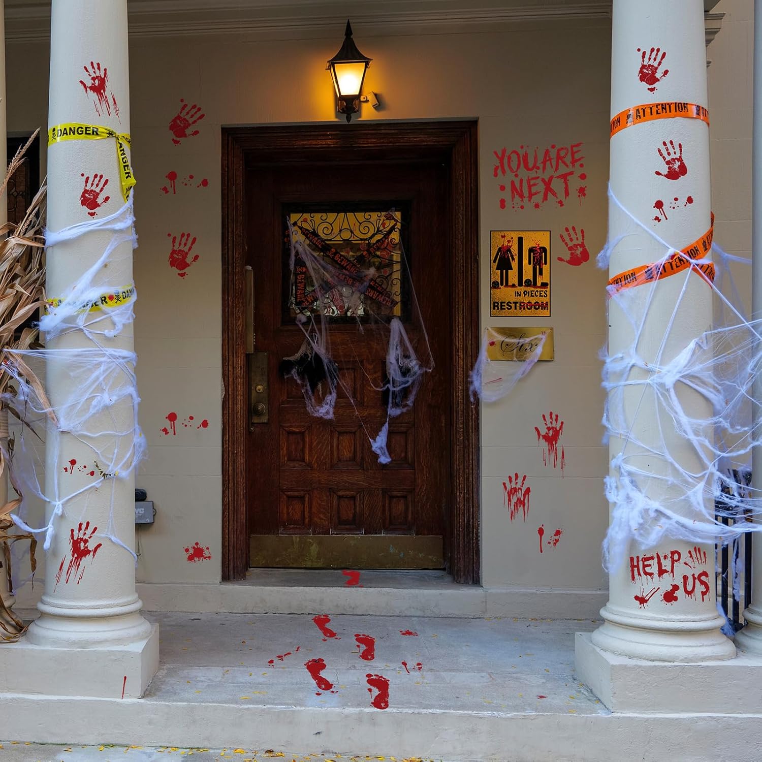 - The Perfect Spooky Party Decoration: Turn your home into the scariest house on the block! Decorate floors, stairs, and pathways with these blood-streaked prints and handprints to simulate a horrifying scene. Place them on your driveway, walkway, or even bathroom steps to create a frightening effect that will shock and amaze your guests. These stickers can transform any location into a chilling spectacle.