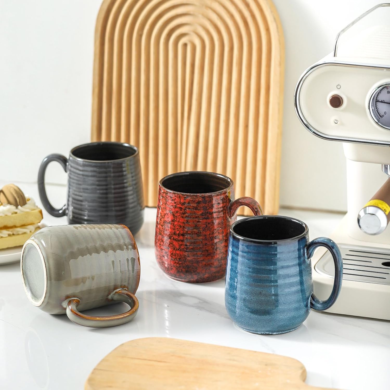 Hasense Coffee Mugs Set of 4, 12 Oz Stoneware Coffee Cups with Large Handle, Colorful Rustic Mug Set for Coffee, Tea, Coco, Latte, Dishwasher and Microwave Safe