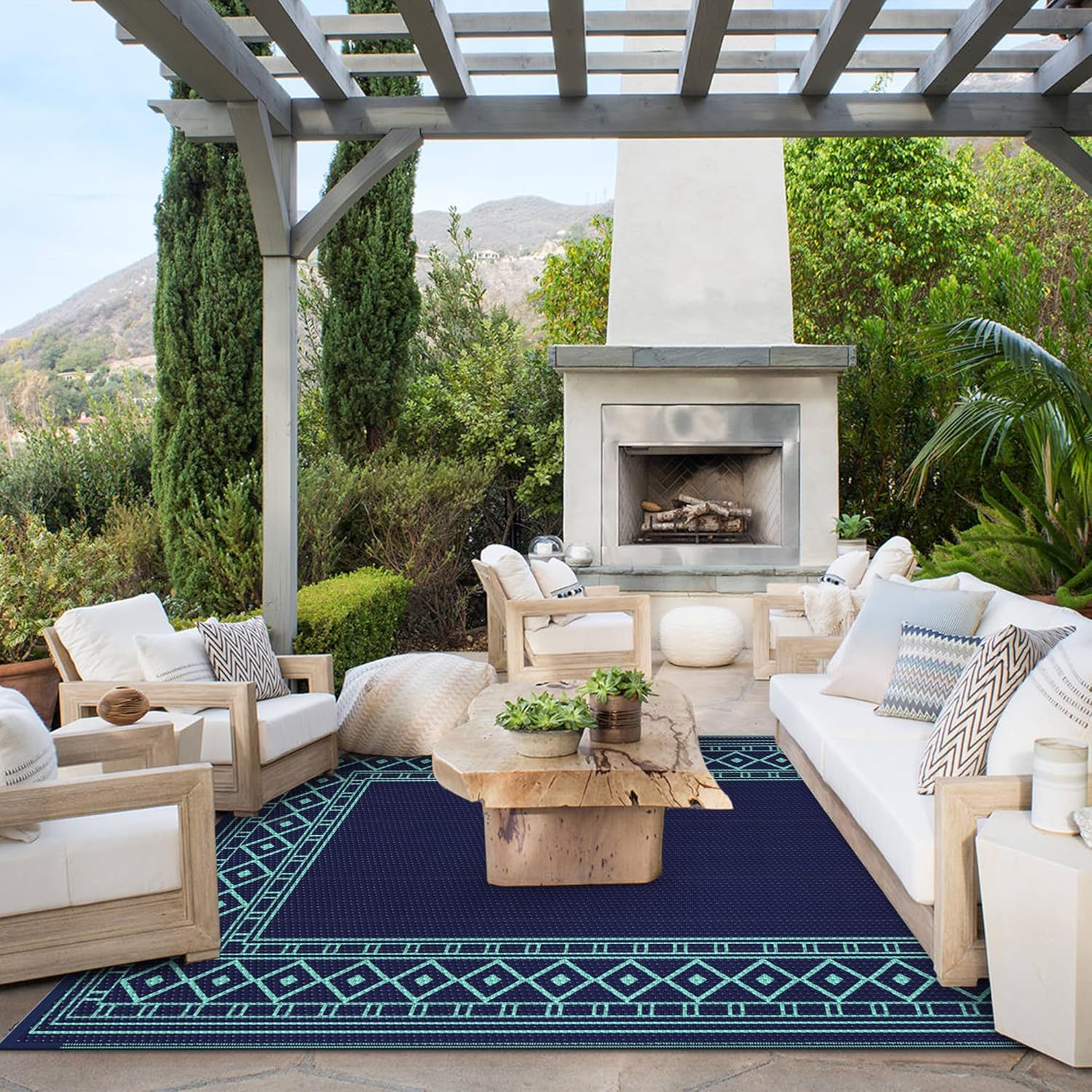 - Geometric Elegance Reimagined: Elevate your fall outdoor spaces with GENIMO's remarkable geometric outdoor rug! Merging the allure of modern art with the practicality of an all-weather accessory. Its striking diamond frame encases a sleek rectangular center, exuding timeless charm perfect for your fall porch decor or garden retreat. A stylish touch that pairs beautifully with your outdoor furniture set, enhancing any fall home decor setting