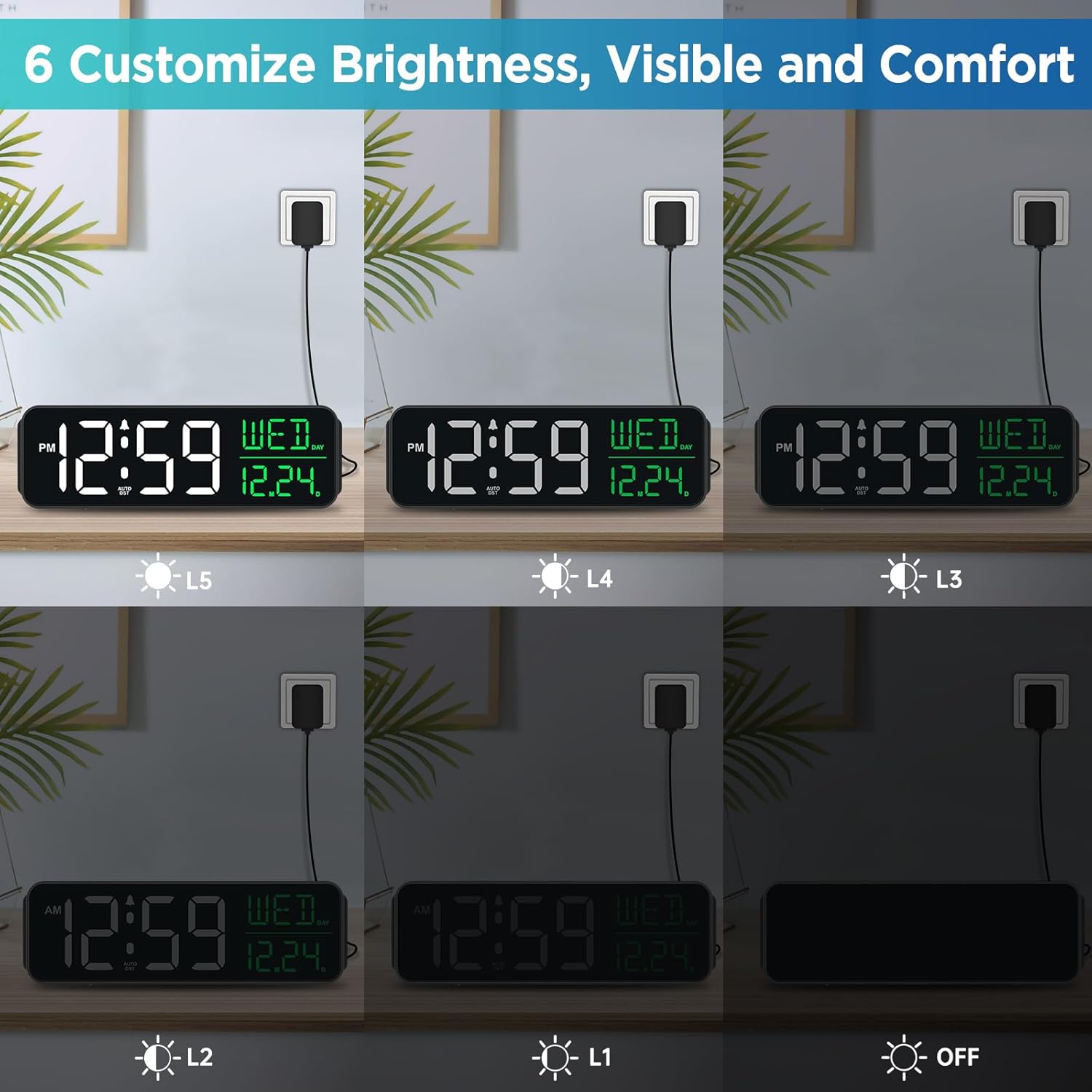 - ššš«š š šš®š¦ššš«š¬ š°š¢šš” ššš£š®š¬šššš„š šš«š¢š š”šš§šš¬š¬: 2-inch height of large numbers are friendly for seniors / elderly and people with poor eyesight. 5 different brightness settings ensure clock time is always visible in various lighting conditions: brighter and comfort in day or lower brightness at night for an improved sleep or completely off at night.