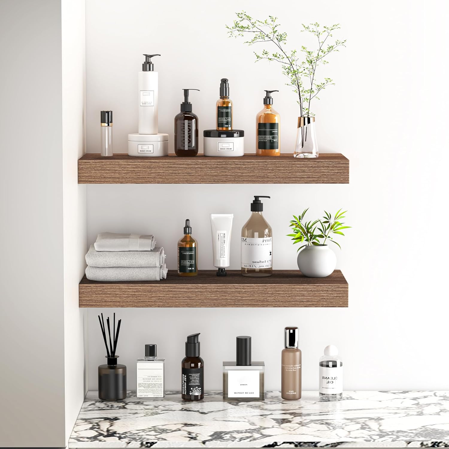 - Multi-scene & Functional - Mount in the bathroom perfect storage of beauty, hair products or aromatherapy. Mount in the bedroom to hold your books, cosmetics and personal privacy things. Mount in the kitchen to hold spices and jars. Or as a display shelf mount in the living room to show your picture frames, trophies or favorite collection. The rustic shelves can help make full use of the empty wall, which is much more space-saving and makes your room look larger and tidier.
