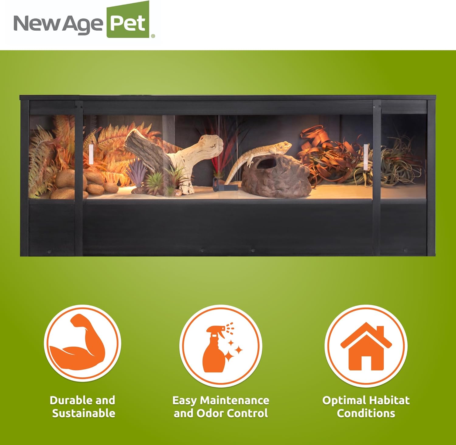 New Age Pet ECOFLEX 60 in Mojave Reptile Lounge in Espresso Black, Durable Wood Plastic Composite Habitat with Vented Side Panels, Removable Sliding Glass Doors, and Mesh Screen Top for Lamp Setup,