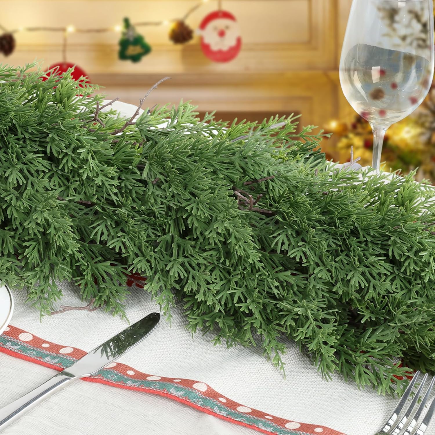 - 【Lifelike Indoor Christmas Decorations】: The fireplace garland Christmas is made of shapeable wire, the Christmas greenery stems can be adjusted by DIY at will. You can adjust to any shape to suit your decorative needs. Whether it is used in the fireplace, stairs or Thanksgiving table decoration, the outdoor Christmas garland can bring more natural and vivid effects to your indoor Christmas decorations