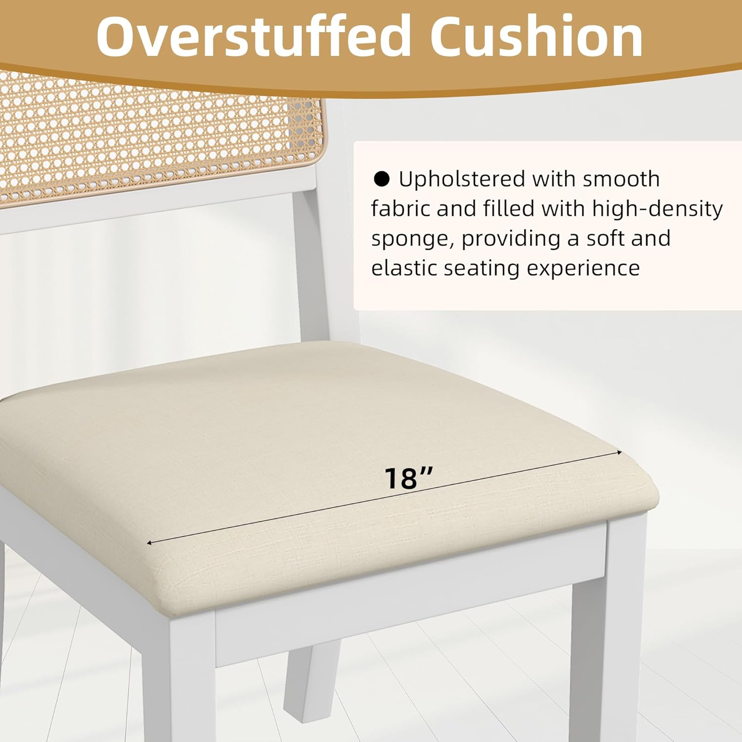 - ćUpholstered Seat CushionćThe farmhouse dining chairs feature a padded seat covered in breathable and soft-to-touch linen fabric. The high-density and resilient sponge filling provides relief from hip fatigue and is ideal for extended periods of sitting