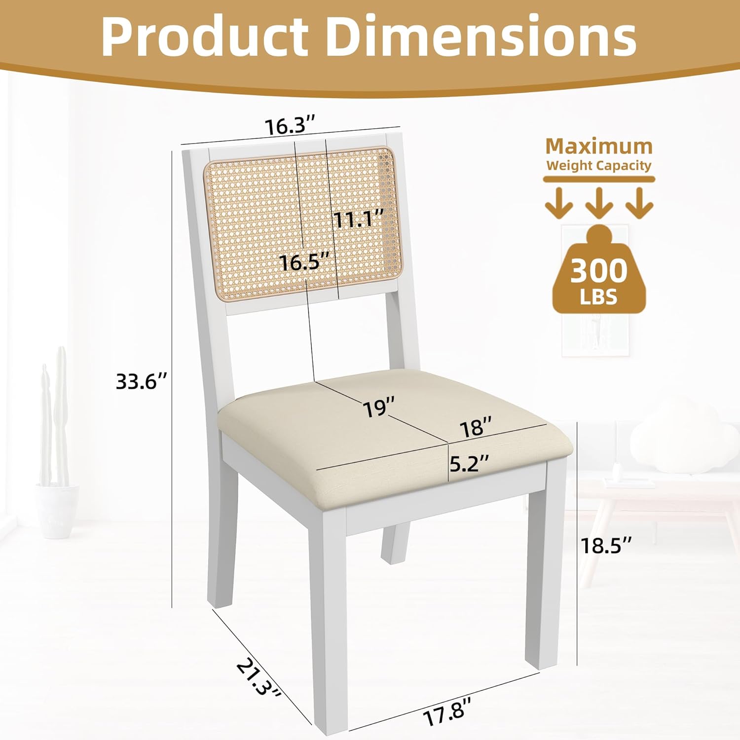 - ćSturdy Wooden FramećMade from solid rubber wood, our rattan dining room chair can support up to 300 pounds. Its four thick wooden legs ensure a stable foundation for sitting, while the integrated design of the backrest and back legs enhances the chairās durability