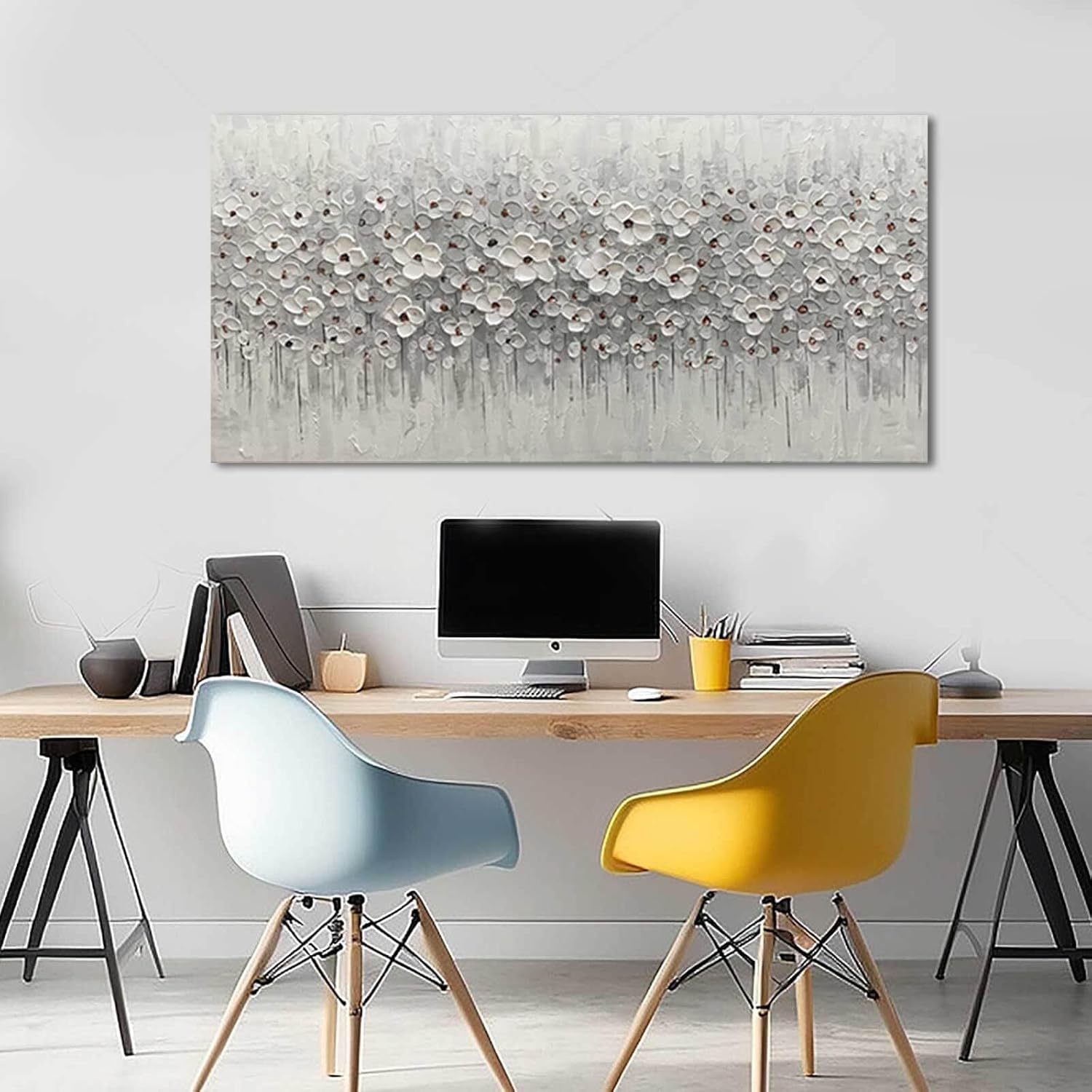 - Size and Package: 24"x 48" inch ,White flowers artwork can be hung directly with the mounting hardware. Each canvas panel is handled with care, your paintings will be carefully packaged in cardboard to ensure they reach you in perfect condition