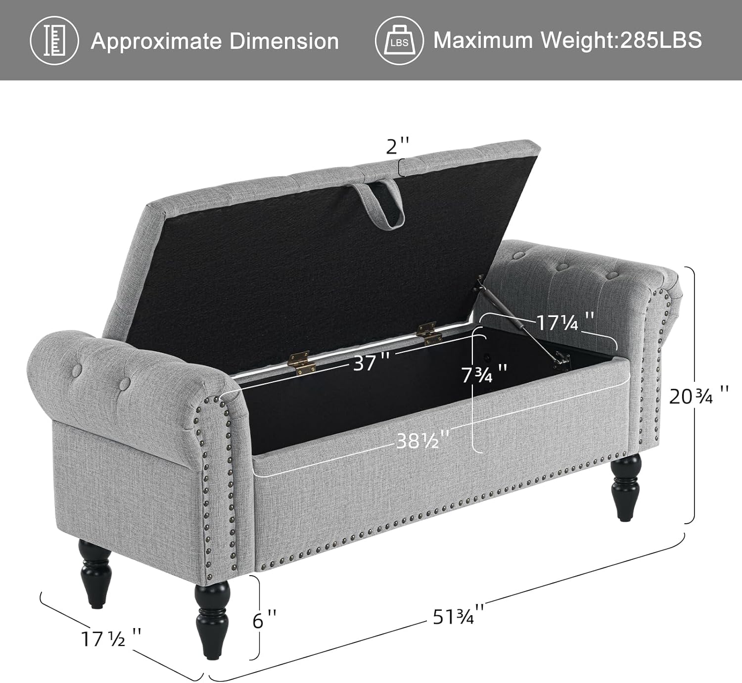 - ·Modern Design: Our storage ottoman showcases deep button tufting and elegantly rolled arms, capturing the essence of a truly modern piece. With a sophisticated structure, this bedroom storage bench embodies a minimalist style that prioritizes comfort and practicality.Diamond Stitch Button Tufting: The button-tufted stitching on the lid enhances the modern designthis of this end of bed bench. The diamond stitch pattern introduces subtle texture while maintaining optimal comfort.