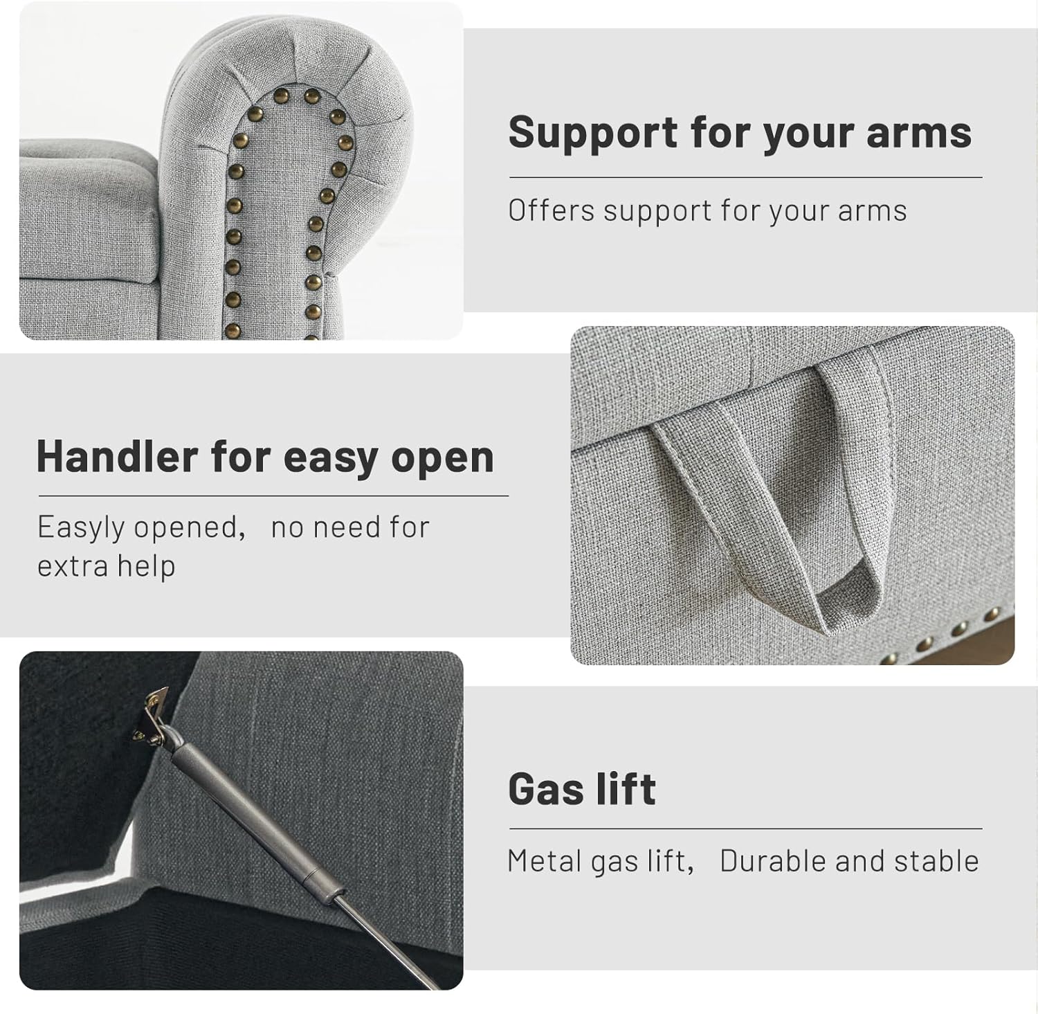 - ·Top-quality Planks&Sophisticated Mechanics: The ottoman bench frame made of multi-layer solid wood planks offers excellent breathability, durability, and support. The easy-lift and soft-close mechanism of the composite hinge and support arm structure ensures that the seat surface opens smoothly. It allows for easy and slow closure, providing a safe and effortless user experience.