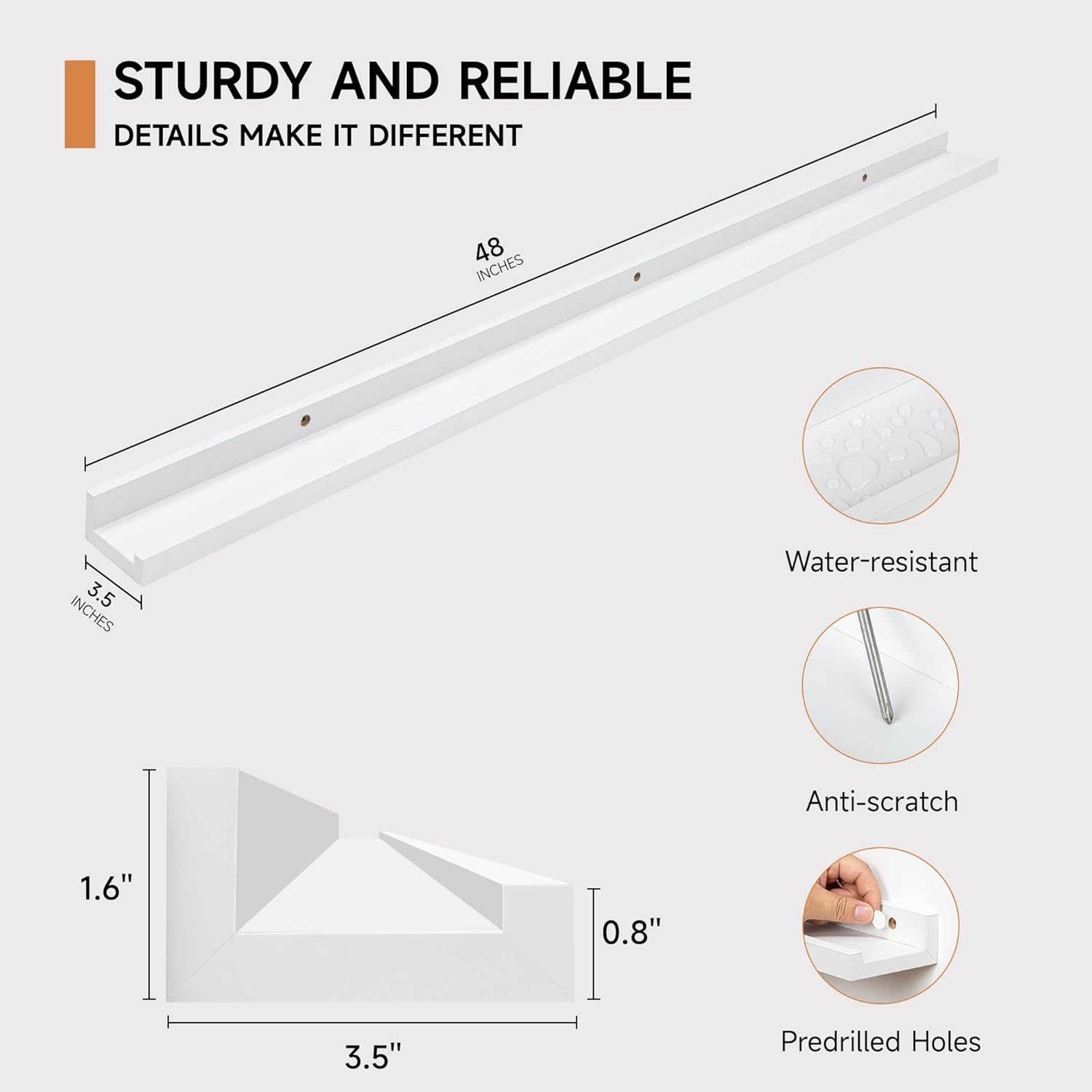 Fun Memories Picture Ledge Shelf, 48 Inch Floating Shelves Set of 2, Large Nursery Book Shelves for Toys Storage, Kids Bookshelf Wall Mounted for Wall Decor Books Photo Frames, White