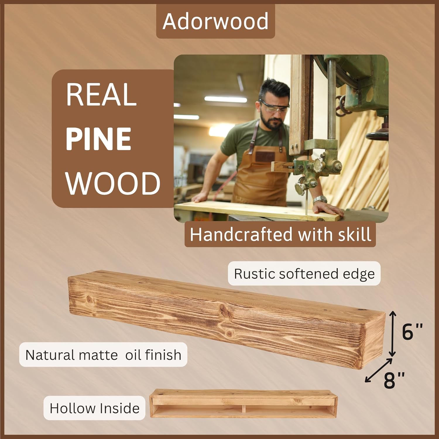 - GENUINE PINE WOOD TEXTURE: Each piece reveals natural knots, small cracks, and unique distressing, ensuring every mantel is one-of-a-kind. Due to the inherent characteristics of real wood, the grain and color may slightly differ from the samples shown.