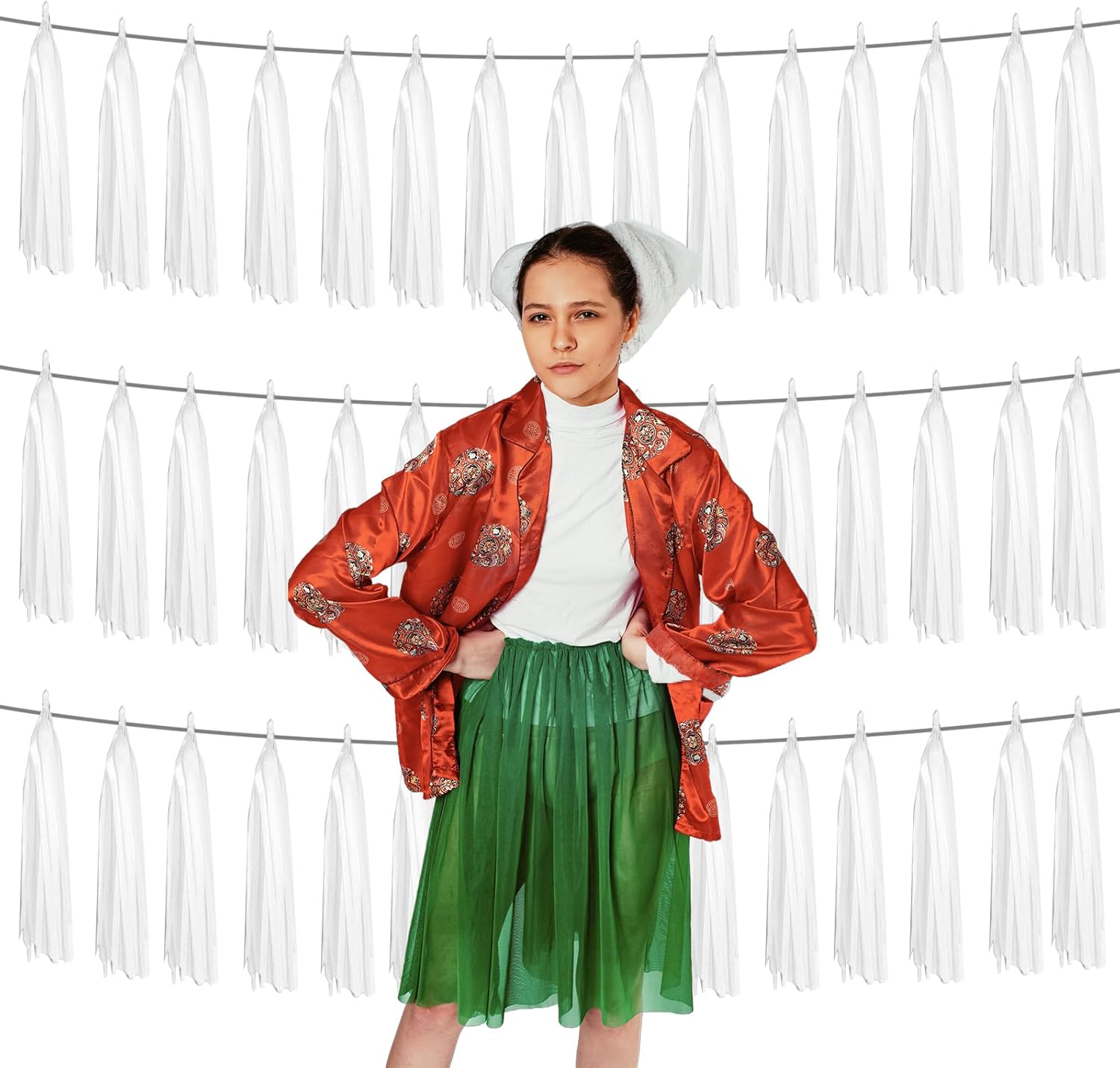 - 【Applicable Occasions】you can use the White beige mint gold tinsel fringe garlands to decorate a classroom, the stage for a school program, a homecoming float, a wedding decoration, a birthday party, baby shower, Halloween, Christmas, new year's Eve, a housewarming party, a bachelorette party, an anniversary Memorial, Hollywood Party, Independence Day, Carnival Party, Bridal Shower, Graduation and more.