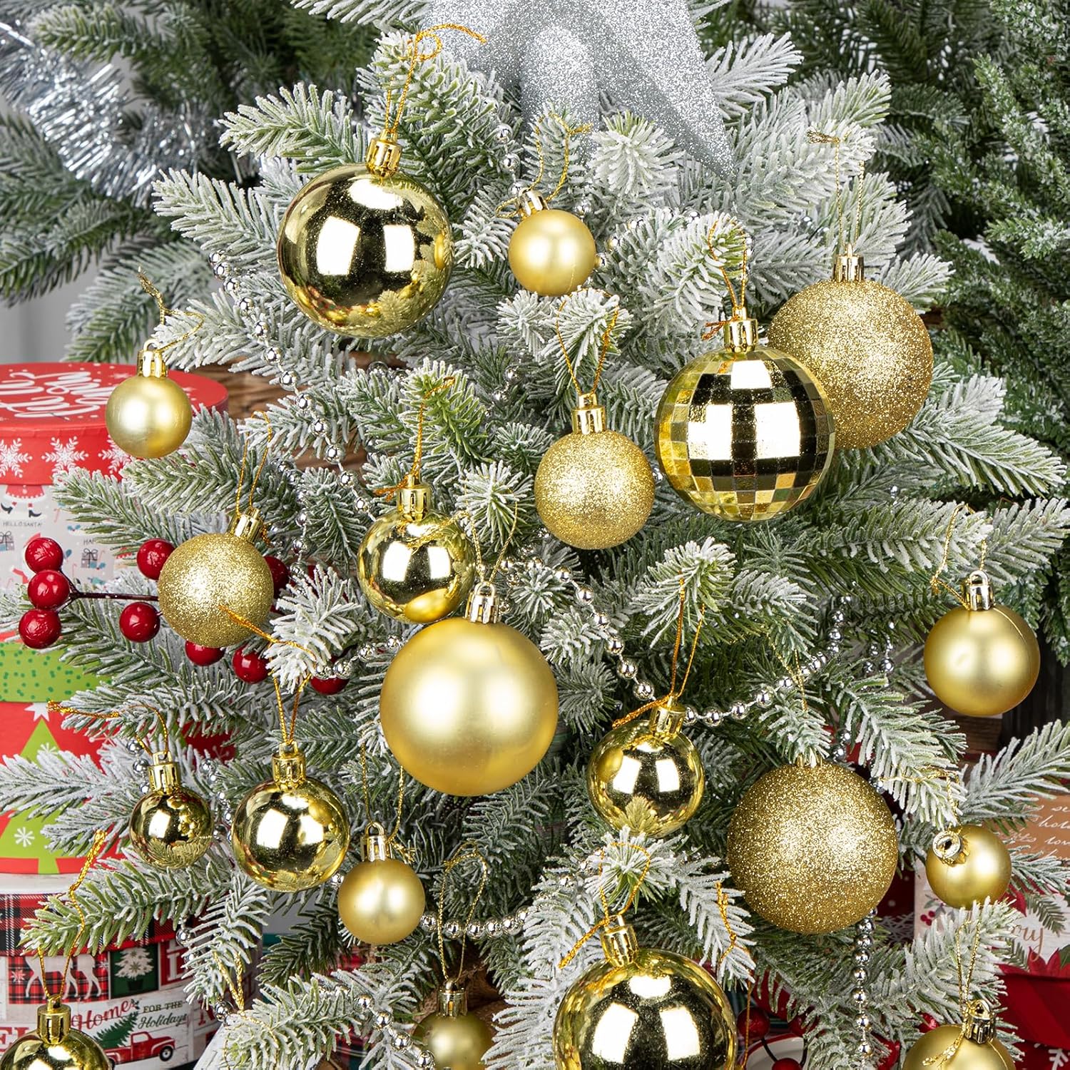 - Christmas Ball Ornament Size: The 50Piece christmas ball ornament set includes 16 small balls (1.18", 3cm), 18 medium balls(1.57",4cm), and 16 large balls (2.36",6cm), Perfect to decorate a whole normal size christmas tree. Tree balls with light weight and won't weigh down the Christmas tree branches. Exquisite tree baubles that create stunning Christmas theme and add stronger festive atmosphere