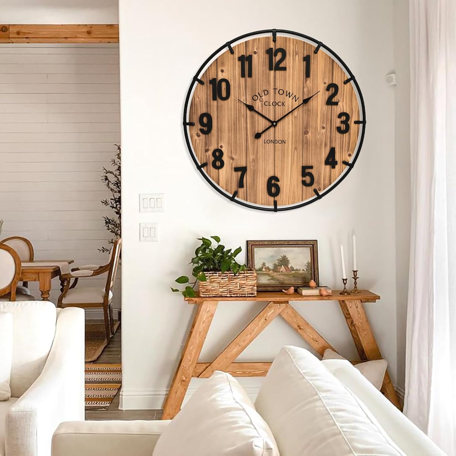 - Perfect for Any Room: Ideal for offices, kitchens, bedrooms, and living rooms, this versatile wall clock adds a touch of rustic elegance to any setting. Its large numerals and clear display make it easy to read from a distance.