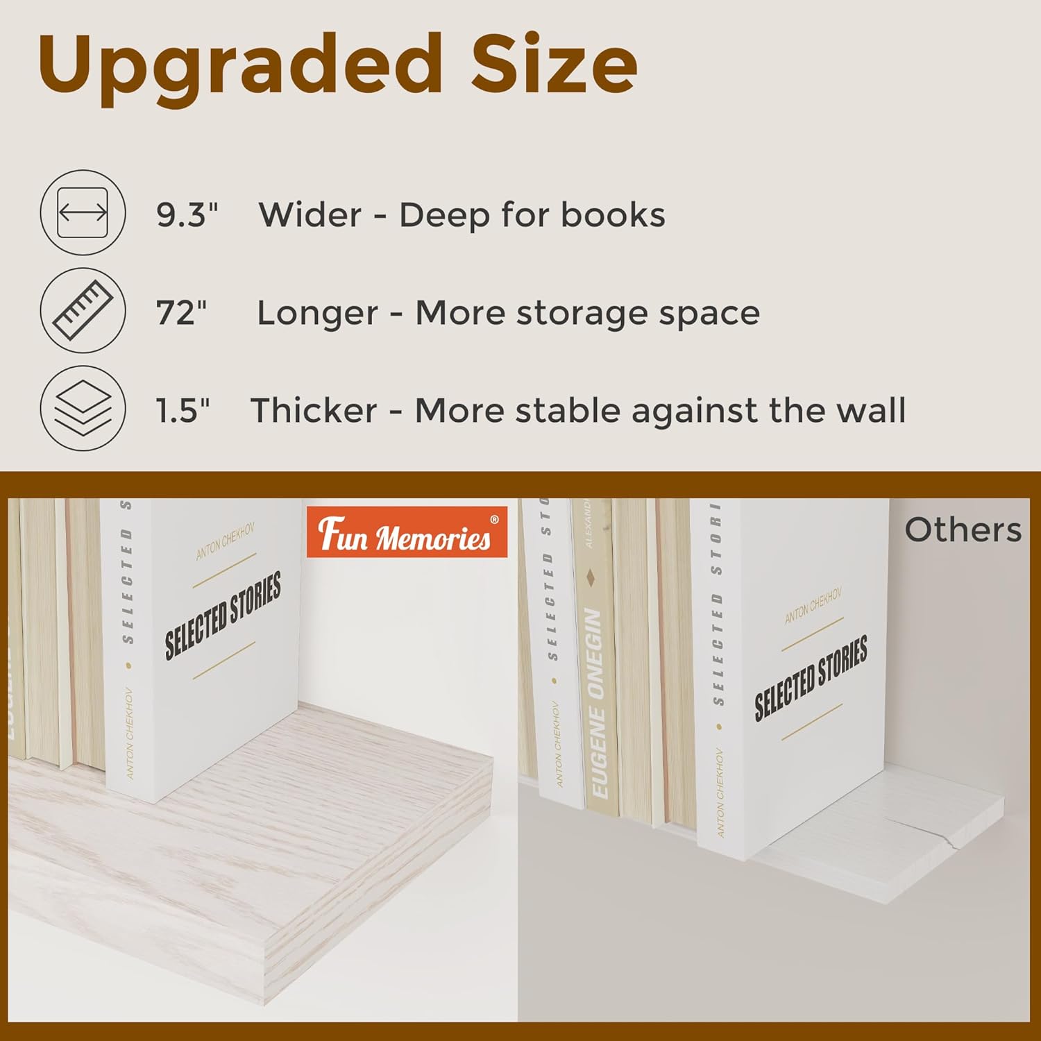 72 Inch Floating Shelves, 72 x 9 Rustic Wooden Fireplace Mantel, 9 Inch Floating Shelf for Wall, Farmhouse Wall Shelves for Home Storage & Display, Brich Color, Set of 1
