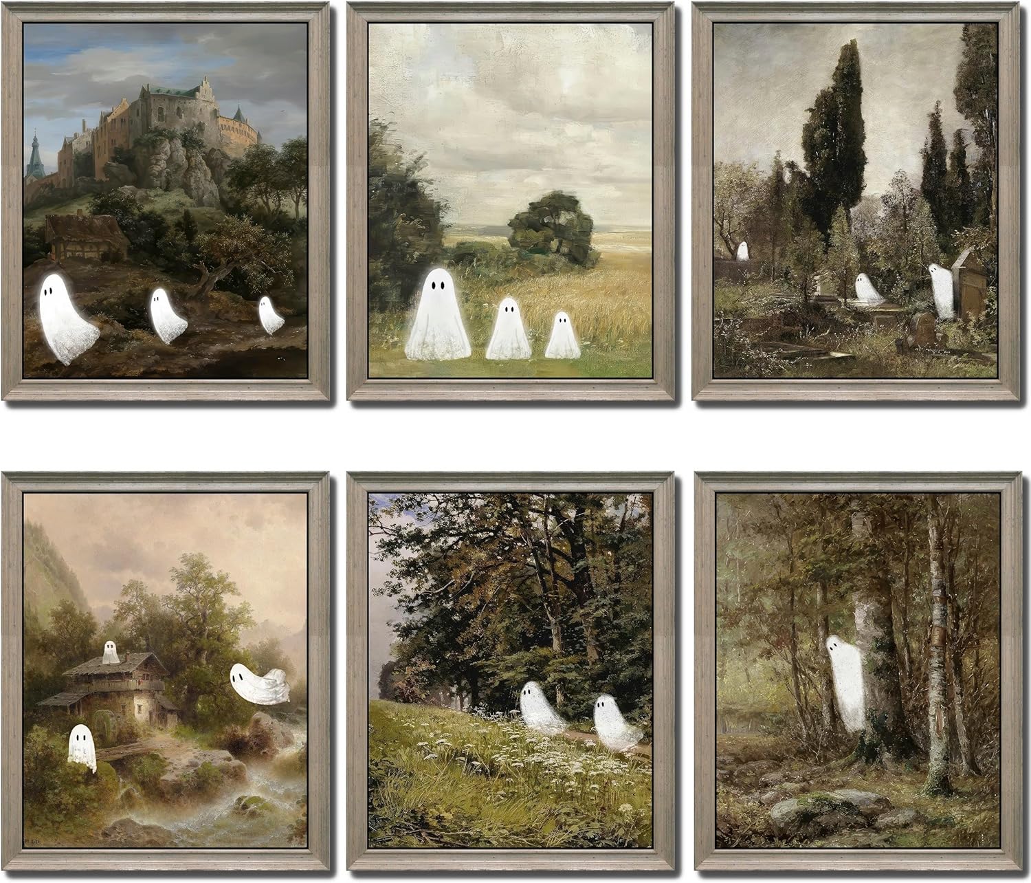 LANCHI95 6 Pcs 8x10in Halloween Wall Art Prints, Vintage Posters, Cute Ghost Pictures for Bedroom Decor (UNFRAMED)
