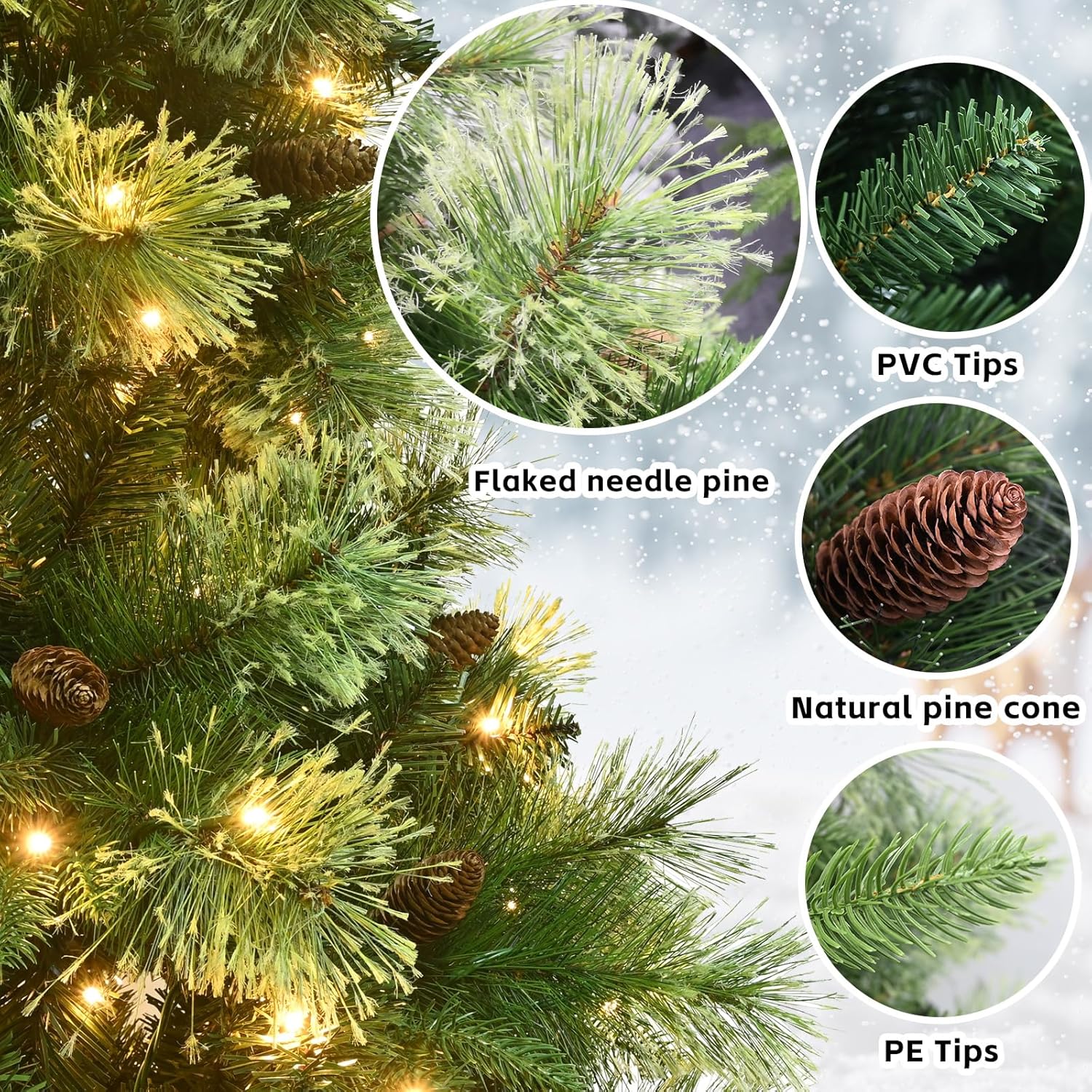 - Material : Metal, Pine Cones, Polyethylene, Polyvinyl Chloride, pine needles