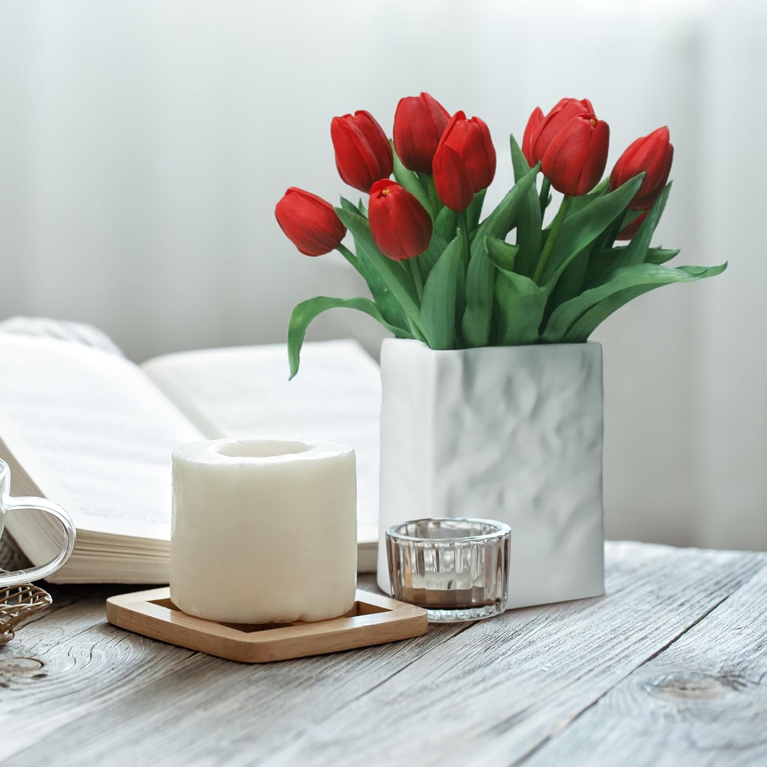 15pcs Artificial Tulips Flowers, Fake Tulips Real Touch, Faux Latex Bouquets, for Party Wedding Home Room Decoration (Red)