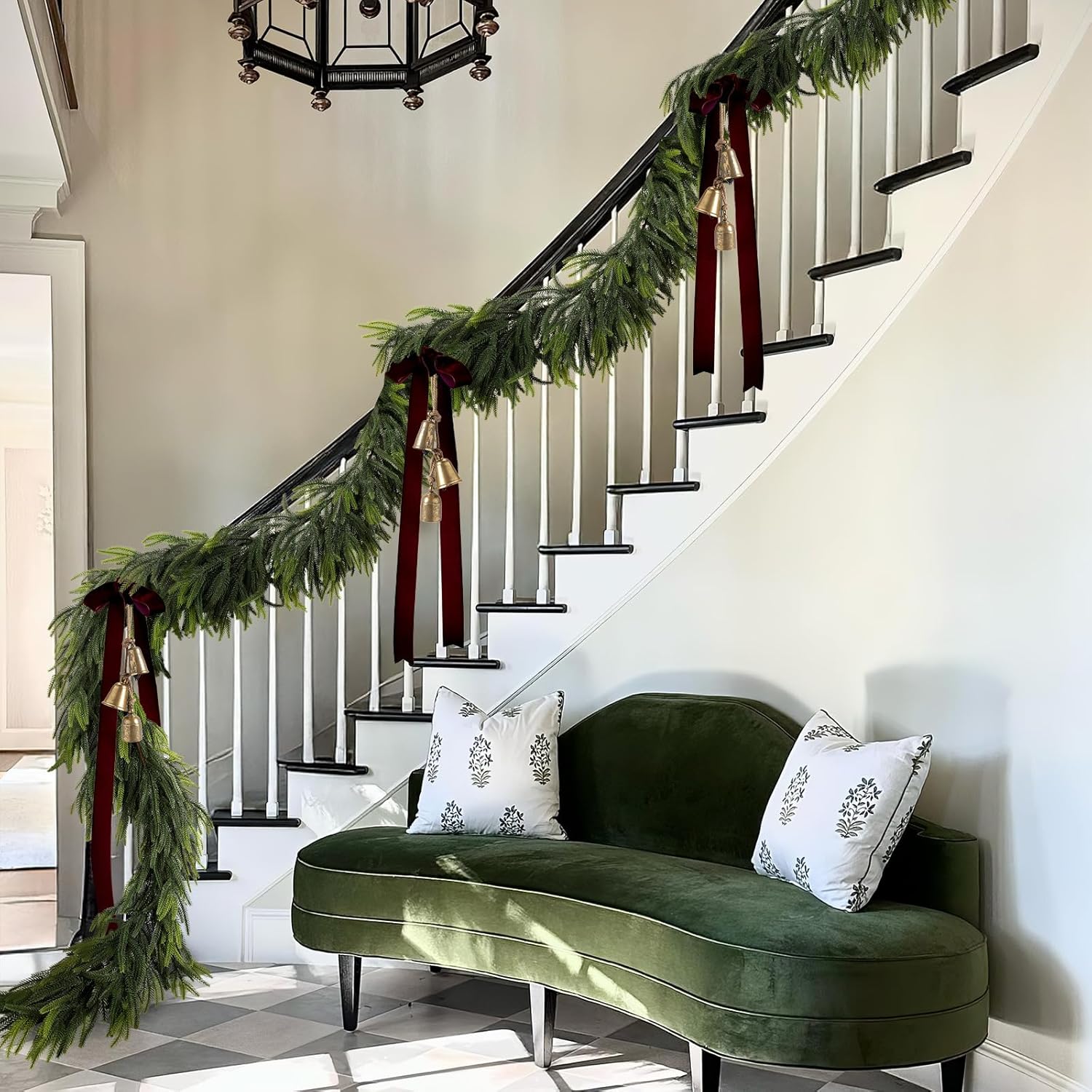 - Packaging & Size: The package includes 2PCS 9FT real touch garland, each pine needle transitioning from dark green to light green, mimicking the true color of the Norfolk Pine to make the garland look real. Each realistic garland approx. 9 feet in length and is suitable as faux pine garland for mantle, table, indoor, outdoor and more. Create a Christmas holiday atmosphere