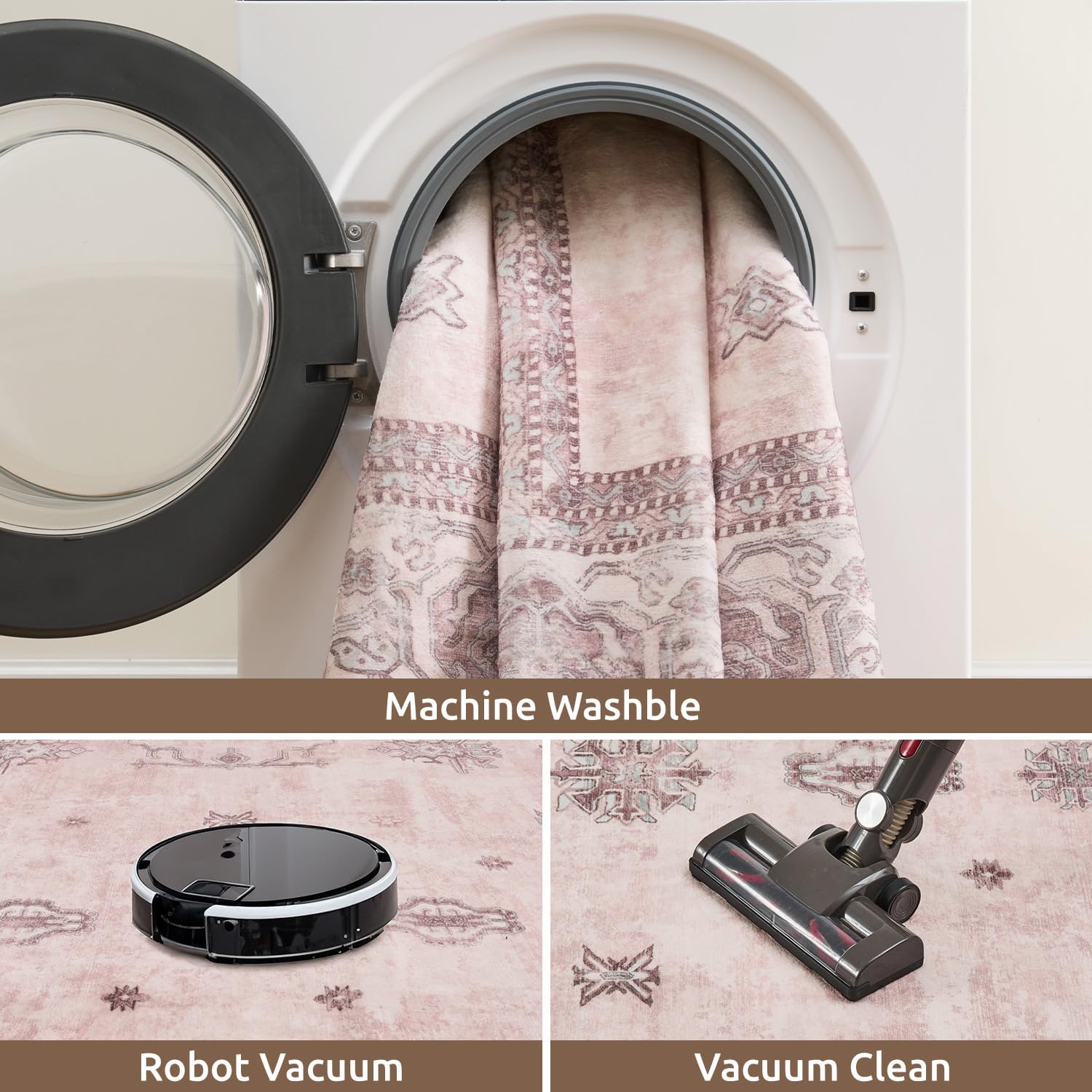 - Easy Care: To maintain washable rugs, regularly vacuum to remove dust and dirt. Carpet for bedroom is machine washable; simply use warm water below 40°C and a mild detergent or carpet cleaner if necessary. If the vintage rug is exposed to direct sunlight, rotate it periodically to promote even fading over time.