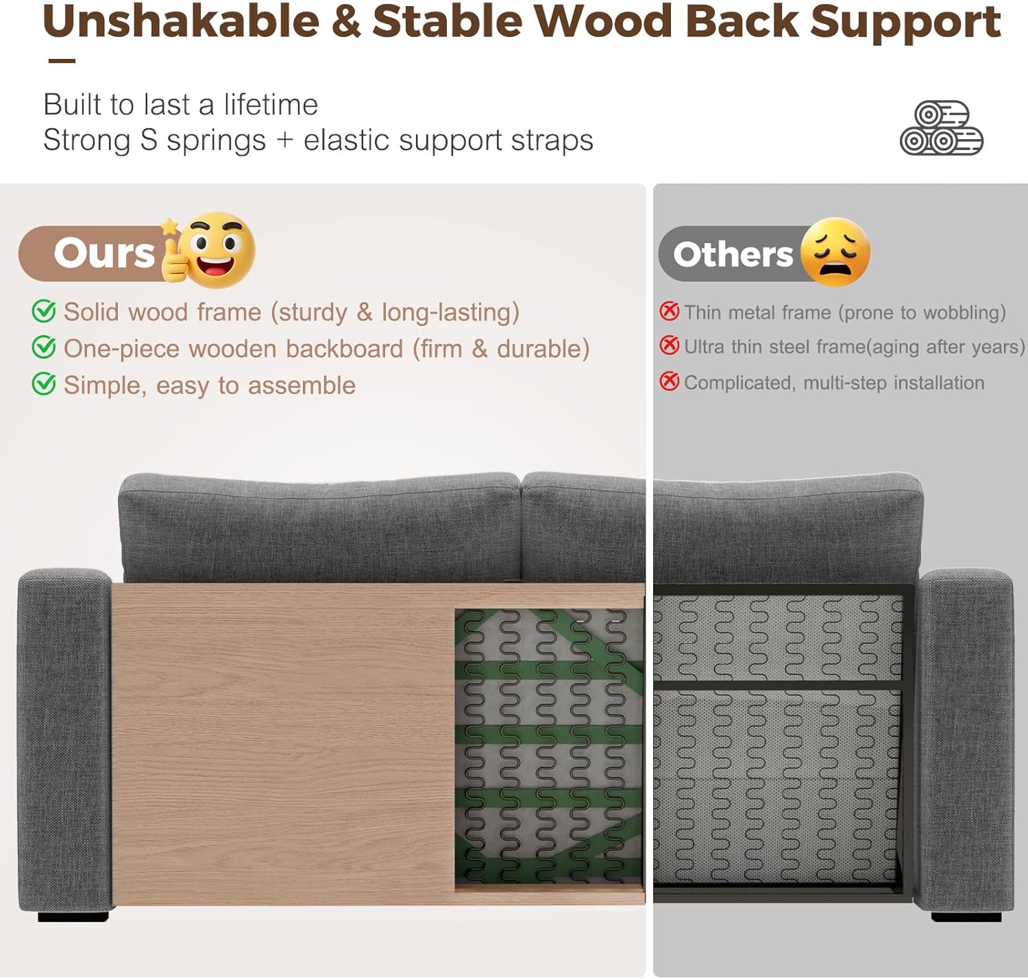 - HIGHER AND THICKENED SEAT - The seat height of the sofa is 18 inches, in comparison to similar products on the market, we have increased the height by approximately 25% in comparison to them.The seat cushion is 7 inches thick and made of high-quality foam with high-grade spring padding. It provides both support and a comfortable seating experience, with a medium firmness level (3 out of 5).
