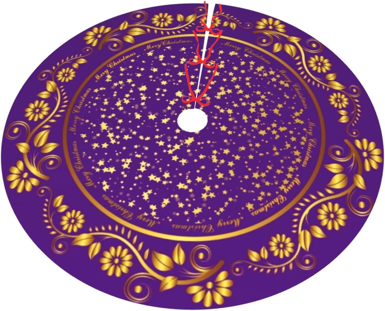 48" Large Christmas Tree Skirt, Elegant Modern Purple Gold Pattern Tree Mat Base Cover for Xmas Festive Holiday Party Decoration Ornaments