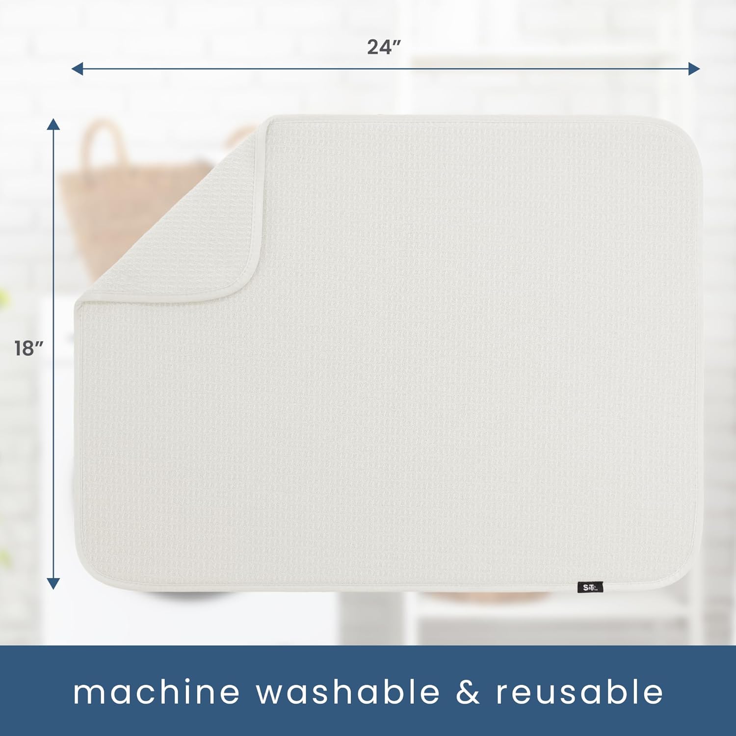 - One S&T INC. Microfiber Dish Dry Mat XL measuring 18 in. x 24 in.; kitchen mat for countertop absorbs up to 4 times its weight in water to keep your countertop dry, unlike a silicone dish drying mat