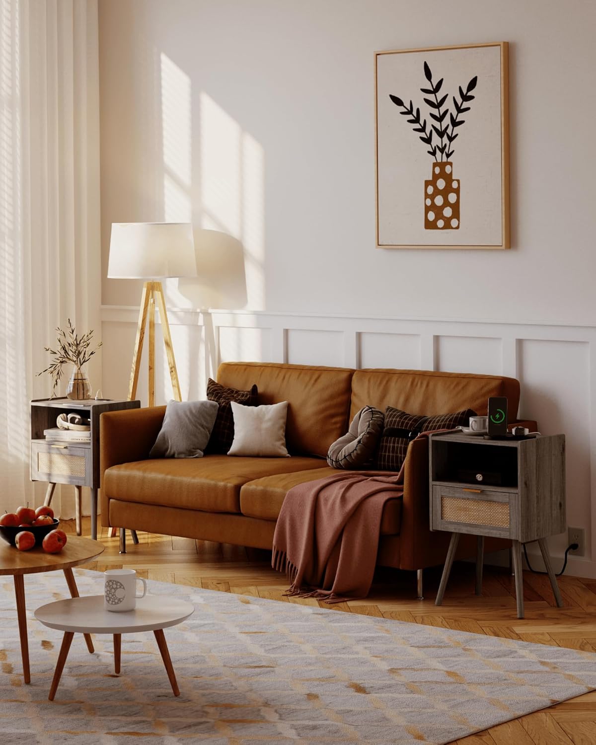 - Embrace an Modern Vibe:Grey Oak with rattan face,this nightstand emits an farmhouse vibe in your bedroom. It can also catch eyes as a side table or end table throughout the home,adding elegance to home life.