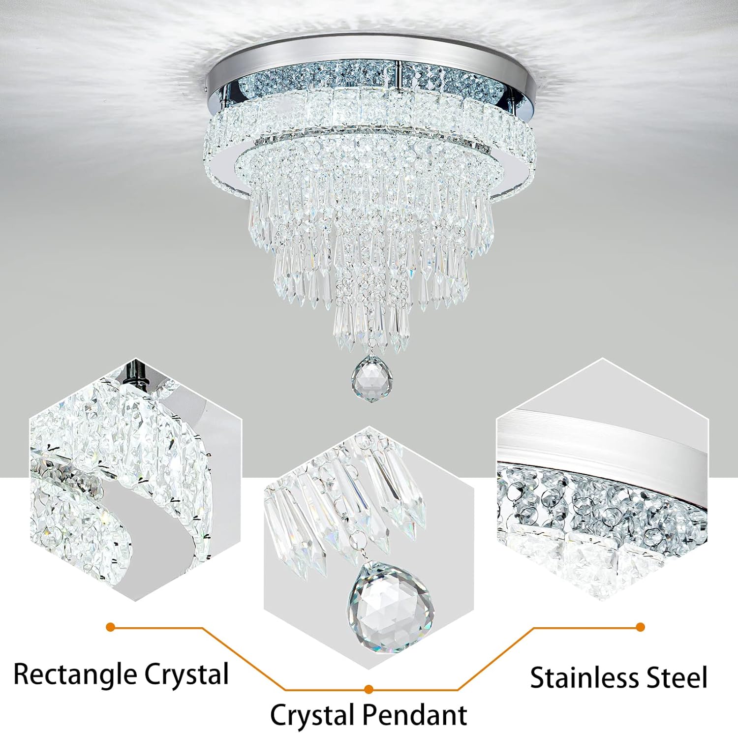 - ✔【Energy Saving】the round crystal ring has built-in LED chips, LED chips are a lot brighter than the light bulbs under same wattage, also there is a round mini spotlight in the ceiling base, all the LED light source are included, which will save you extra time and money to buy bulb.