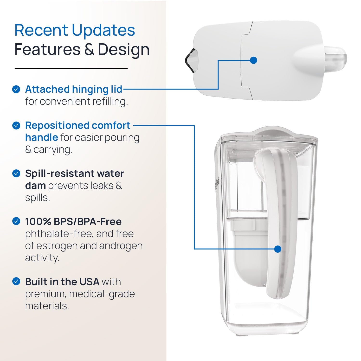- NEW DESIGN August 2024 Clearly Filtered Water Pitcher – It’s time to protect yourself with healthy hydration. Hazardous contaminants are found in ordinary tap water – including pharmaceuticals, microplastics, heavy metals, and phthalates. The redesigned Clearly Filtered Water Pitcher has the most ergonomic comfort handle and an easy hinge fill lid, and is still the most powerful pitcher on the planet. Get clean water you can trust – anywhere – at home, the office, college dorm, or even RVing.