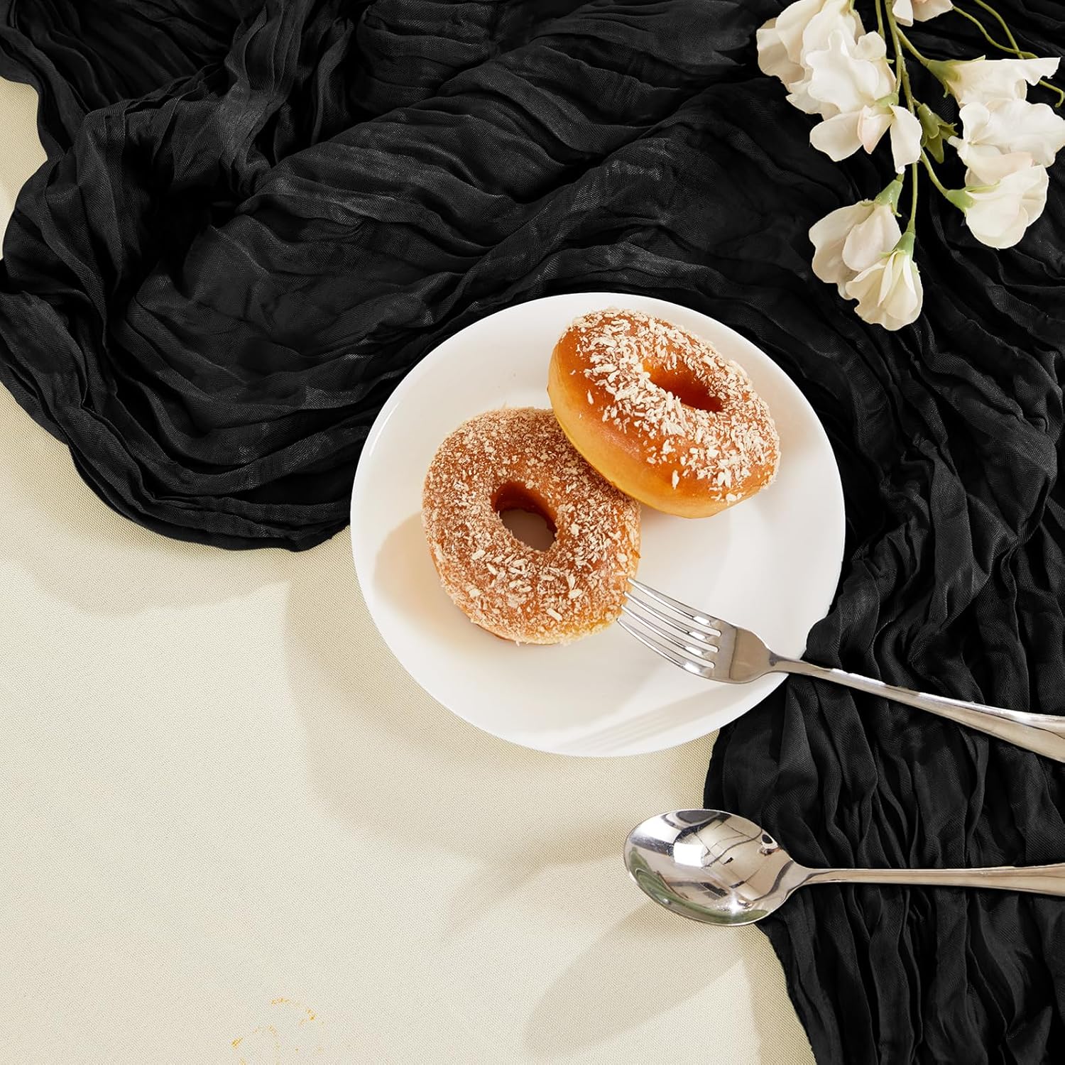 - āæćPREMIUM MATERIALćThe cheesecloth table runner is made of high-quality polyester. Carefully sewn, delicate edge, not easy to lose thread, not easy to decolorize, lightweight and skin-friendly, can be cut into any length and shape. High-quality fabrics hang on banquet tables to add a romantic, sophisticated and fluid atmosphere and can be paired with flowers, candlesticks, greenery and other decorations to impress guests.