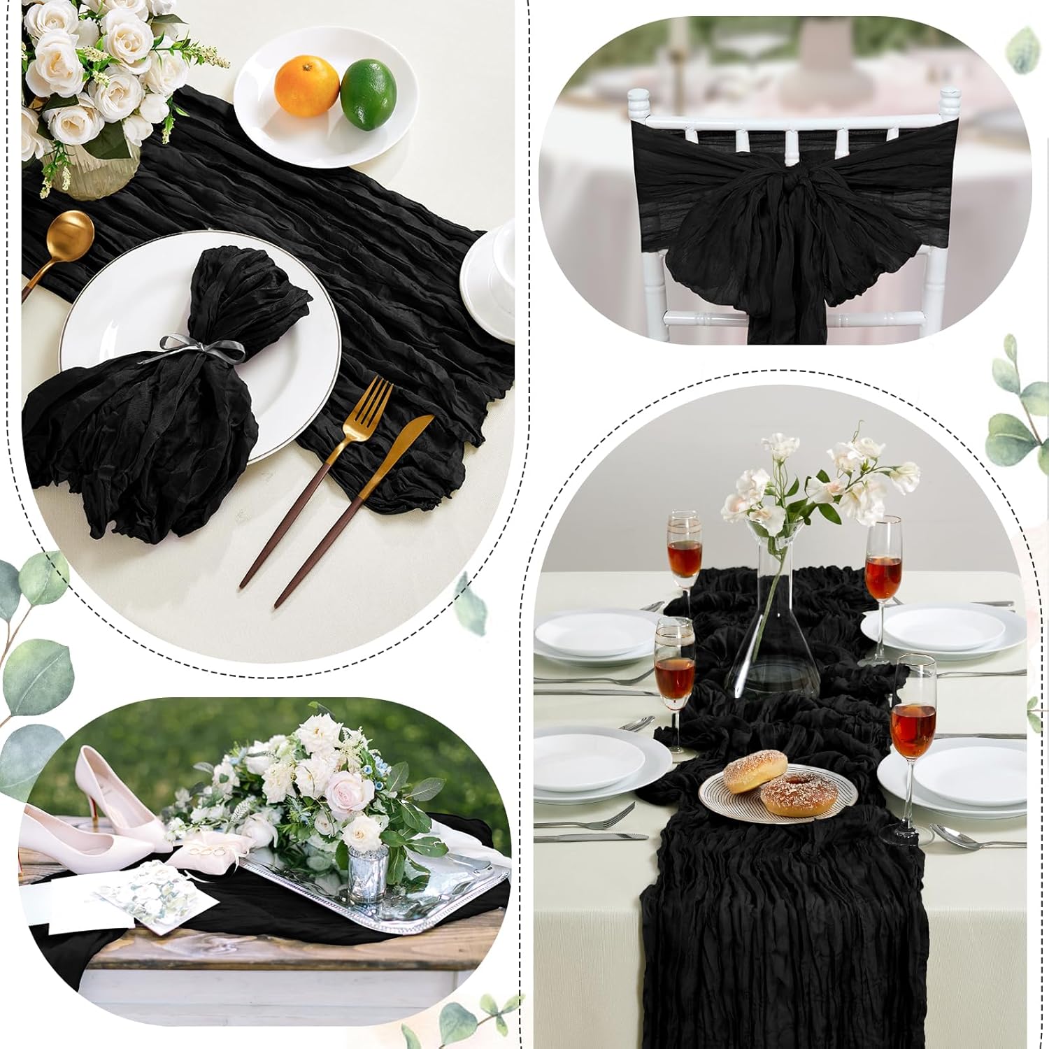 - āæćWIDELY APPLICATIONćThis boho style table runner is suitable for any occasion, including weddings, banquets, bridal or baby shower decorations, wedding arches, candy buffets, ceremonies and many other special occasions. This black table runner will show a romantic atmosphere and let you and your friends enjoy the party.