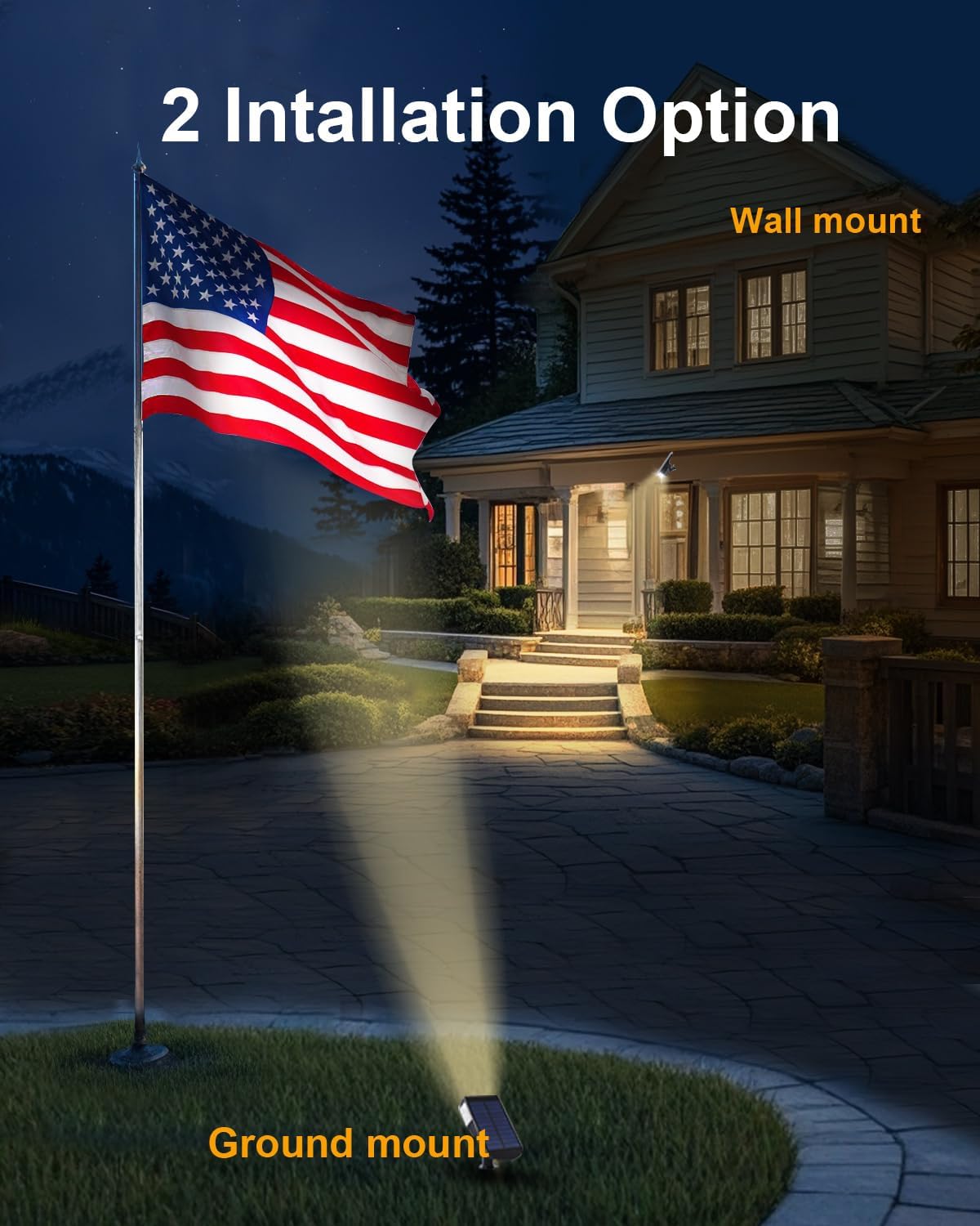 - 🔩𝐄𝐟𝐟𝐨𝐫𝐭𝐥𝐞𝐬𝐬 𝐕𝐞𝐫𝐬𝐚𝐭𝐢𝐥𝐞 𝐌𝐨𝐮𝐧𝐭𝐢𝐧𝐠 𝐂𝐡𝐨𝐢𝐜𝐞𝐬:POLIGHTY landscape spot lamps are easy to move and set up, without needing power outlets. You can place them anywhere to light up your outdoor space at night. They come with two simple installation choices: a ground stake for planting in soft ground, letting you light up your garden easily; and a wall-mount option for attaching to solid surfaces like fences or house walls.