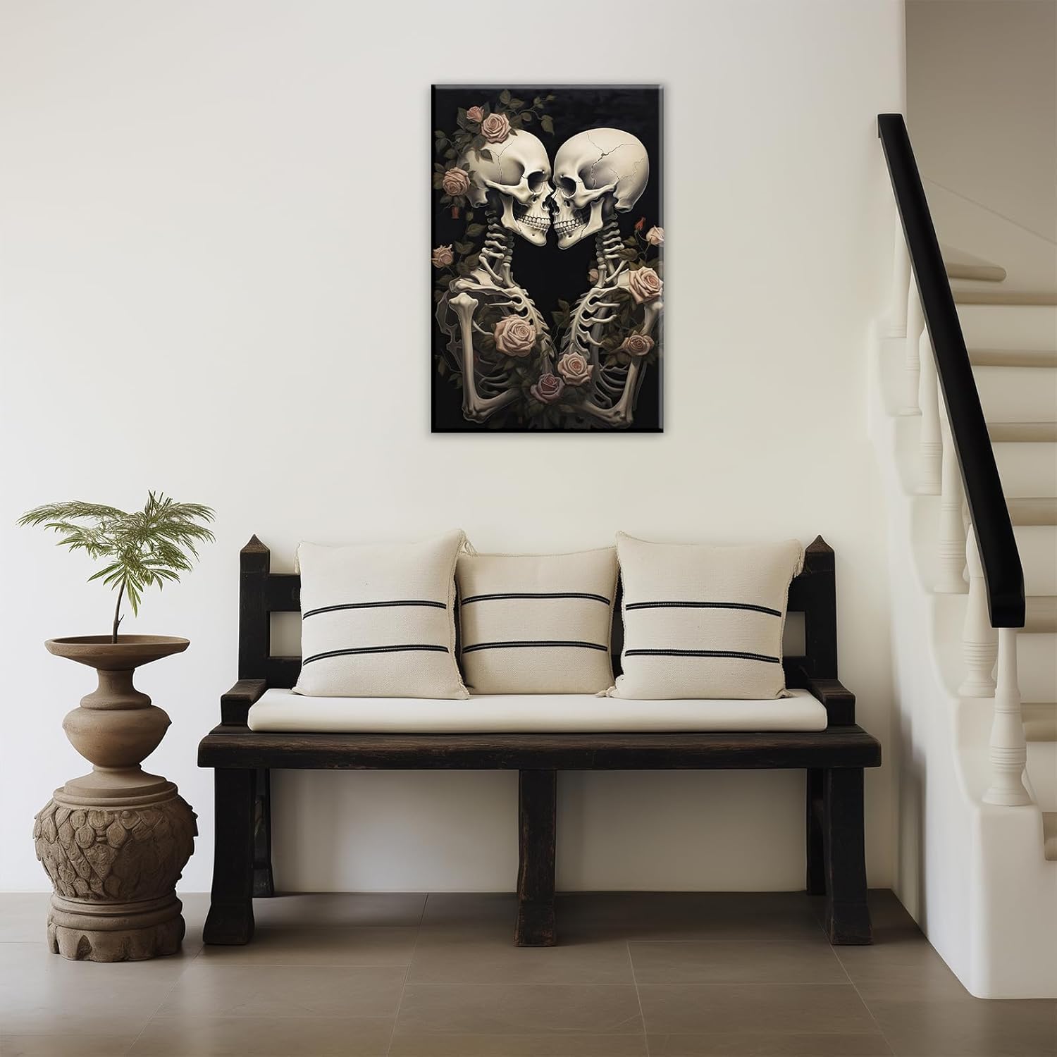 OAAPITI Vintage Skeleton Canvas Wall Art Gothic Painting Artwork Retro Rose Skull Art Poster Abstract Romantic Theme Picture Halloween Living Room Decor(Artwork-4,28"x42")