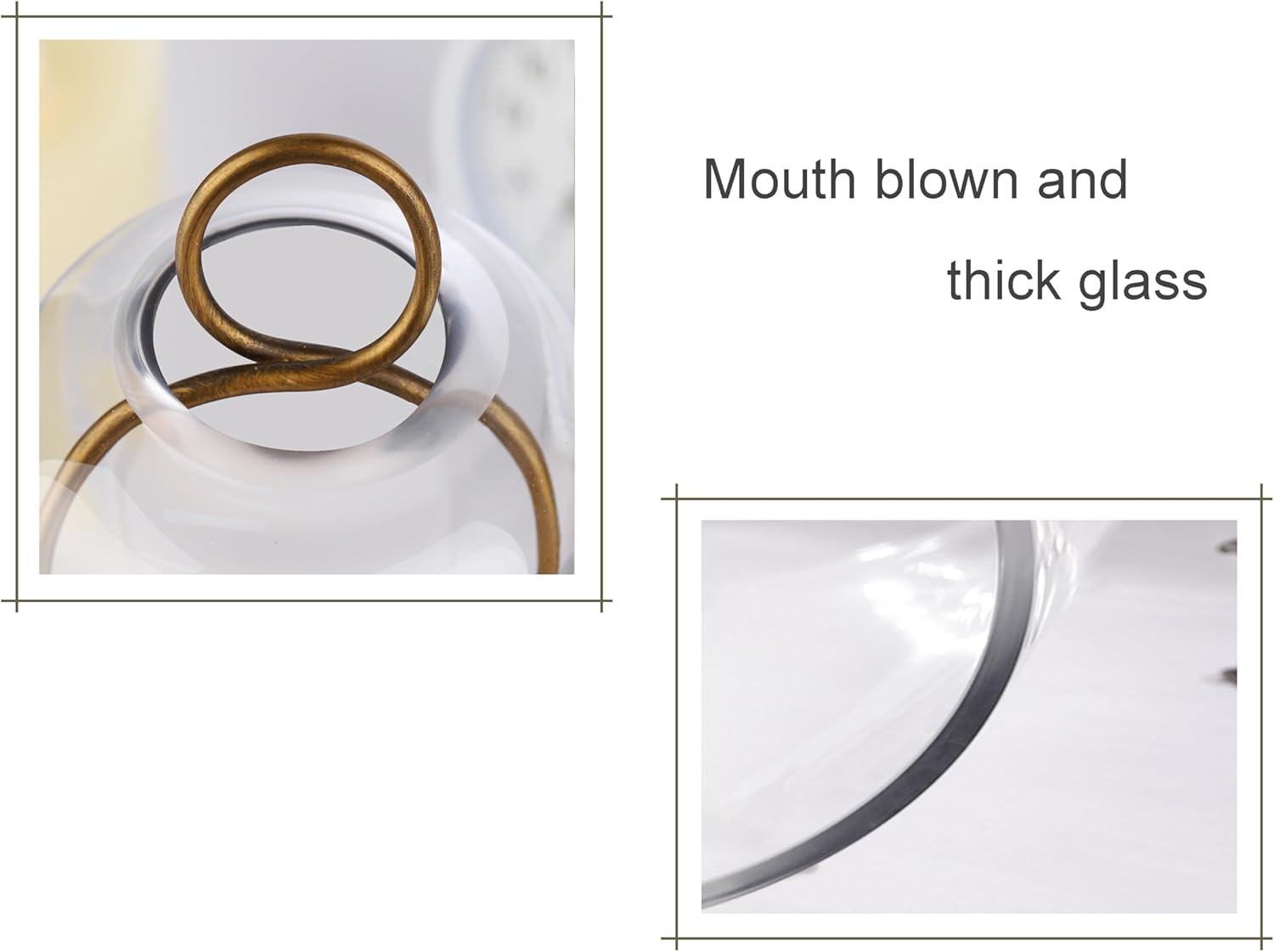 7.5" High Versatile Modern Metal Hurricane Lantern with Handmade Sturdy Glass Dome for 2" Pillar Candle & Plants (Brass, 4" x7.5)