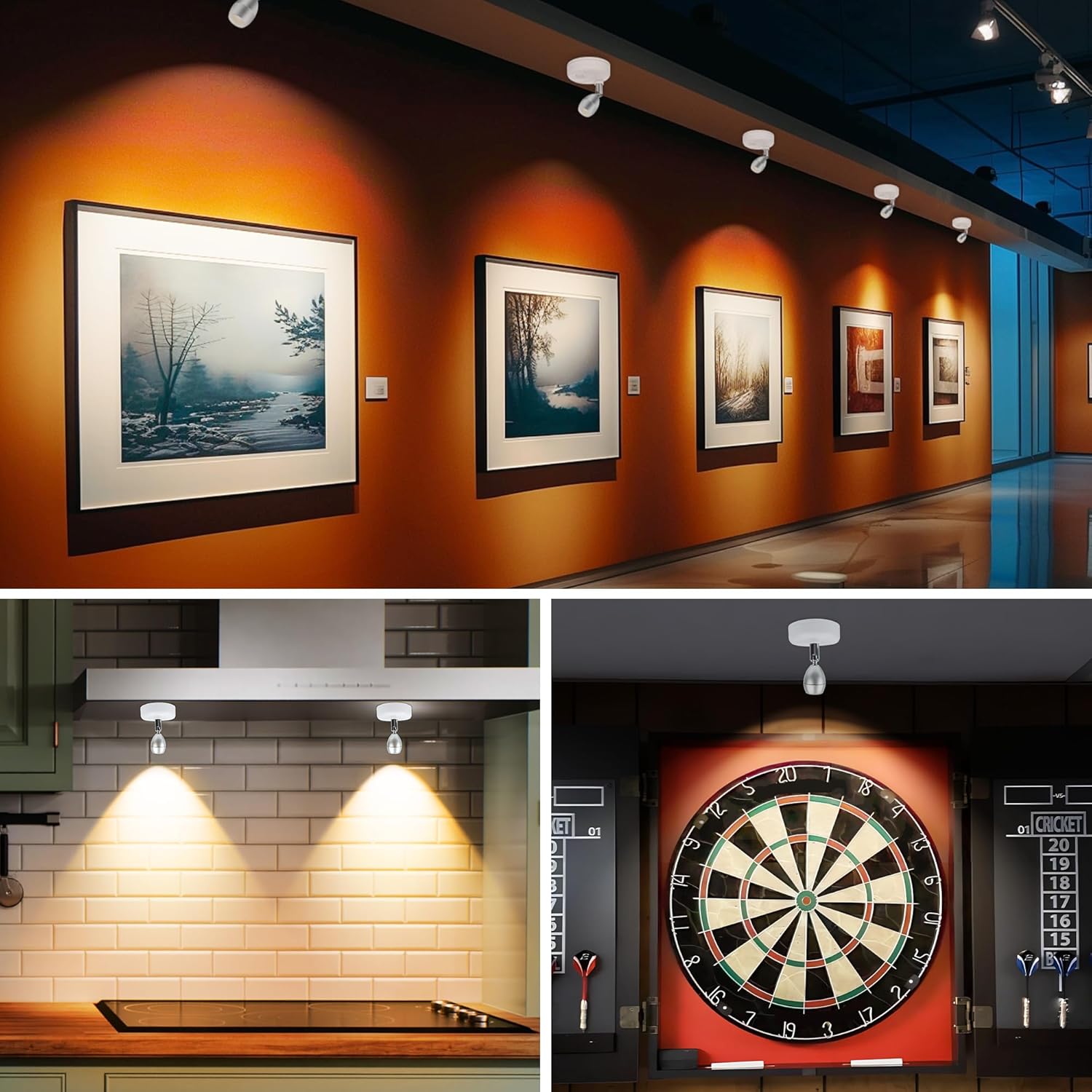 4 Pack Wireless Spot Lights Indoor, Battery Operated Uplighting, Mini Spotlight with Remote 3CCT Tree Lights Indoor, Accent Wall Lights for Display Plant Picture Dartboard