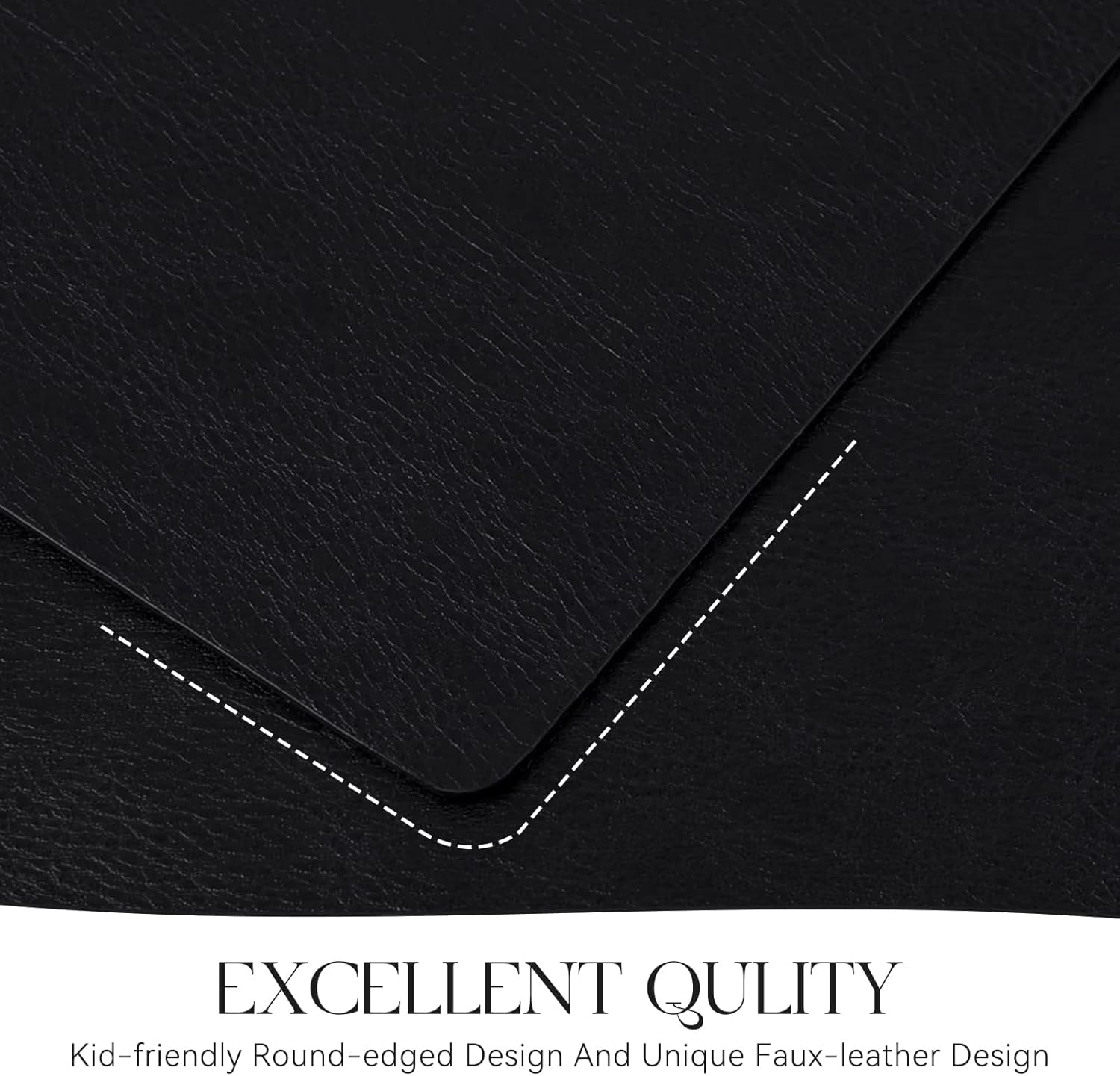 MOSAYT Vinyl Placemats Set of 12-12 X 17 Inch - Faux Leather 100% Waterproof Oil-Proof Wipeable PU Place Mats, Heat Resistant Reversible Table Mats for Kitchen, Dining, Outdoor (Black)