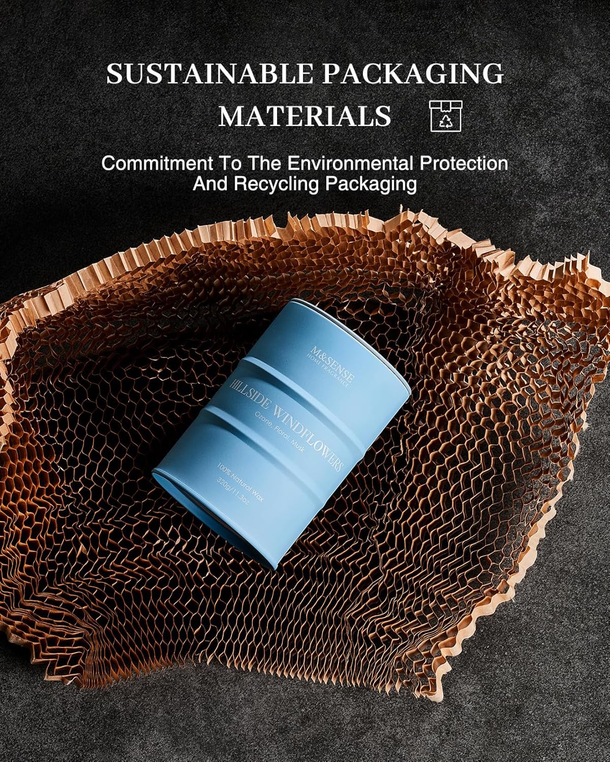 - 💚 Sustainable Material - M&SENSE candles are all crafted with the finest and most natural ingredients. Using high-end vegetable wax and unbleached cotton wicks in a reusable and recyclable tin. Packaged in recycled honeycomb paper and cardboard box for a more sustainable future.