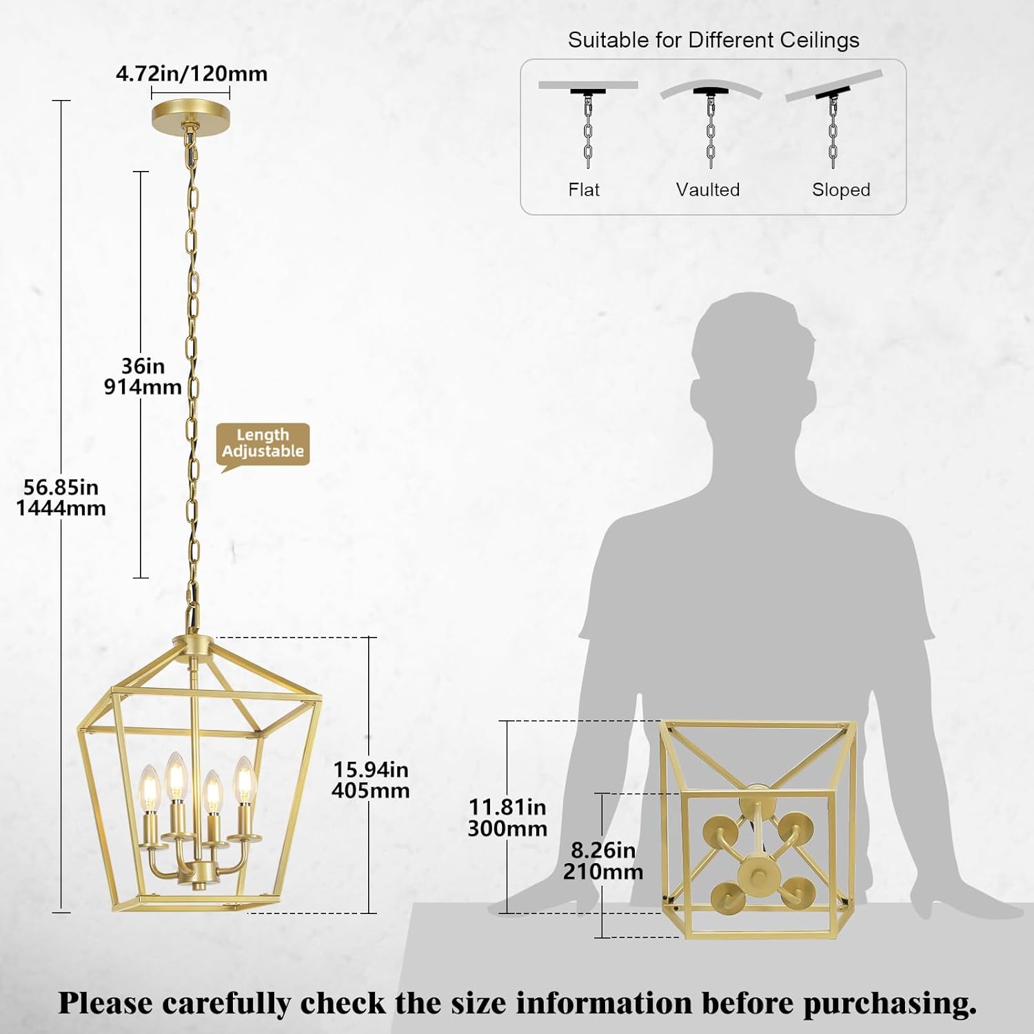 - Gold and Stylish Appearance: Featured with gold center candlestick and geometric outward appearance, the geometric lantern chandelier is a wonderful addition to add industrial touch to your home dƩcor. Artistic and eye-catching, it can perfectly blend in any place such as bedroom, living room, bathroom, dining room, hallway or kitchen island (indoor use only)