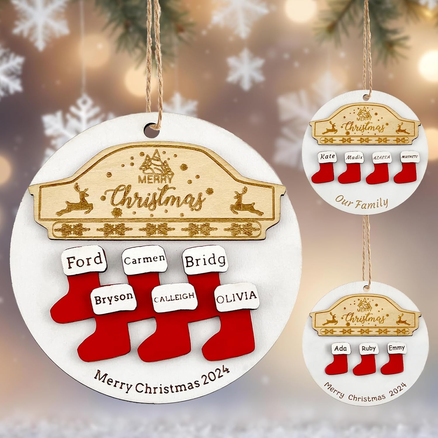- 【Personalized Christmas Ornaments 2025】: Personalized Christmas family name ornaments full of Christmas spirit. A variety of Christmas elements are combined and matched on a wooden circle, making the entire product more Christmas-friendly