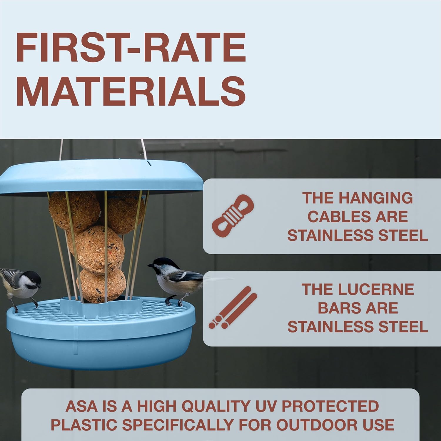 SWISSINNO No Mess Bird Feeder Lucerne Smart Birds for Fat Balls - Feed Birds, not mice & Rats! Robust & Reliable for Hanging - Made in EU - Light Blue