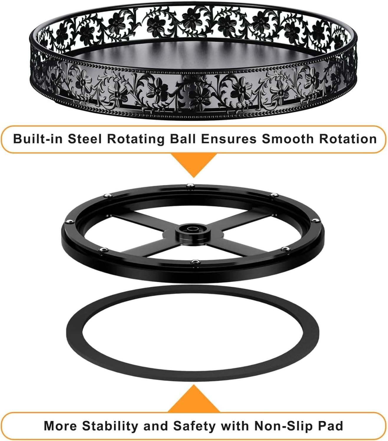 - 360°Rotation for Easy Access: The lazy susan is equipped with steel ball bearings for a smooth 360°rotation. Perfect for deep cabinets, cupboards, corner pantry or countertop storage, easy to access what you need without knocking over any bottles. Large swivel base and non-slip pad design make this lazy Susan organizer more stable and sturdy.