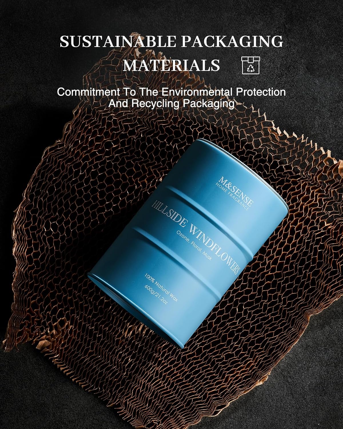 - 💚 Sustainable Material - M&SENSE candles are all crafted with the finest and most natural ingredients. Using high-end vegetable wax and unbleached cotton wicks in a reusable and recyclable tin. Packaged in recycled honeycomb paper and cardboard box for a more sustainable future.