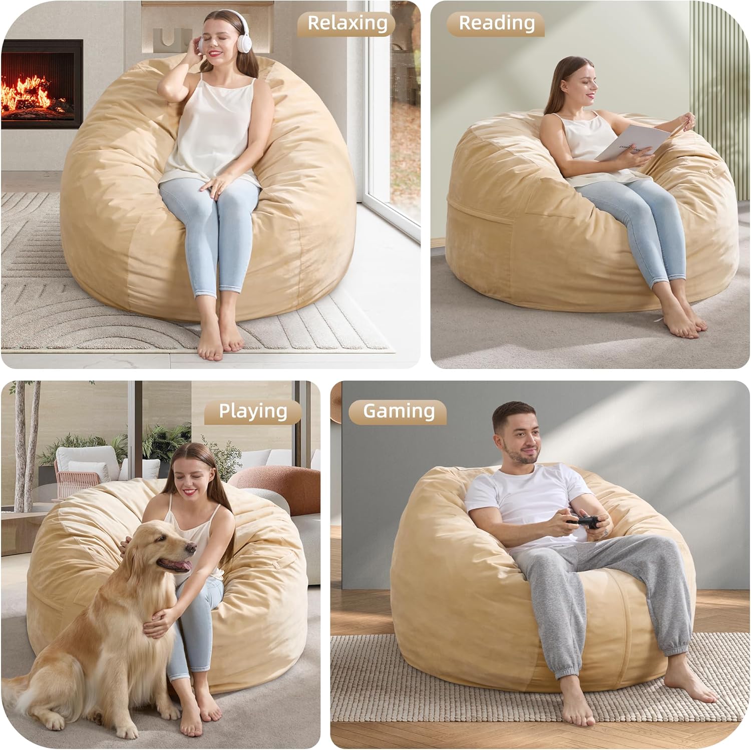 - Versatile Usage: Beanbag chair is the ideal addition to your dorm rooms, living room, bedroom, etc. You can move bean bag chairs with ease, making them ideal for movie night, game night, and reading.